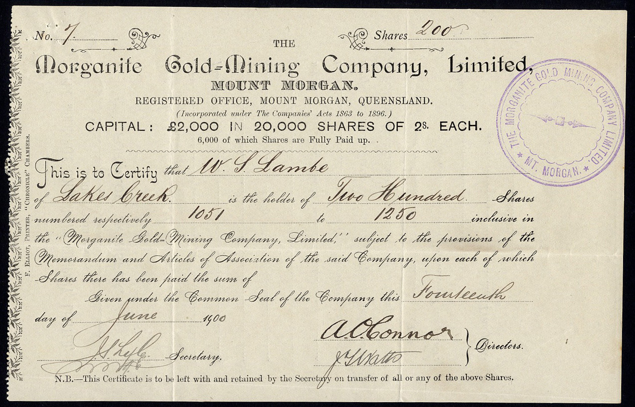 Registered in Queensland under the Companies Acts 1863 to 1896.