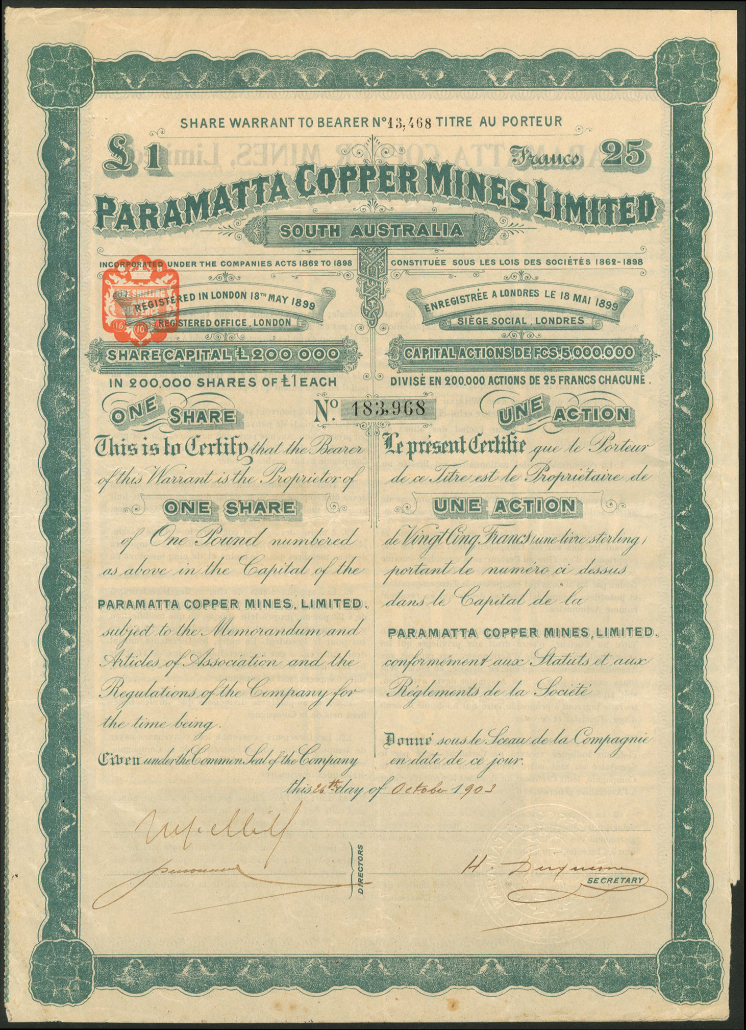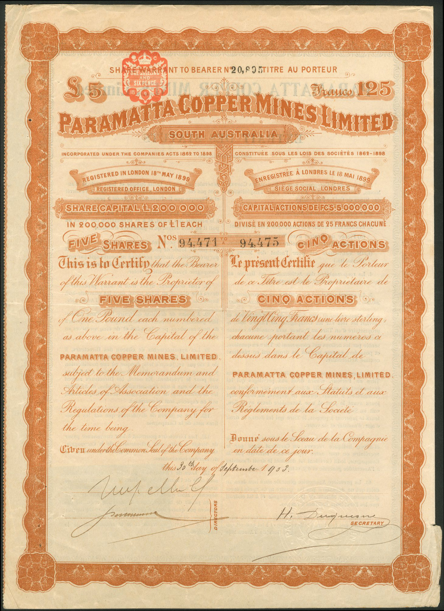 Registered 18th May 1899 to acquire 9 mineral leases from W & H Bickford totalling 630 acres in the Wallaroo district, Yorke Peninsula, South Australia. Voluntary liquidation August 1908 and removed from register in 1913. Company number 62194