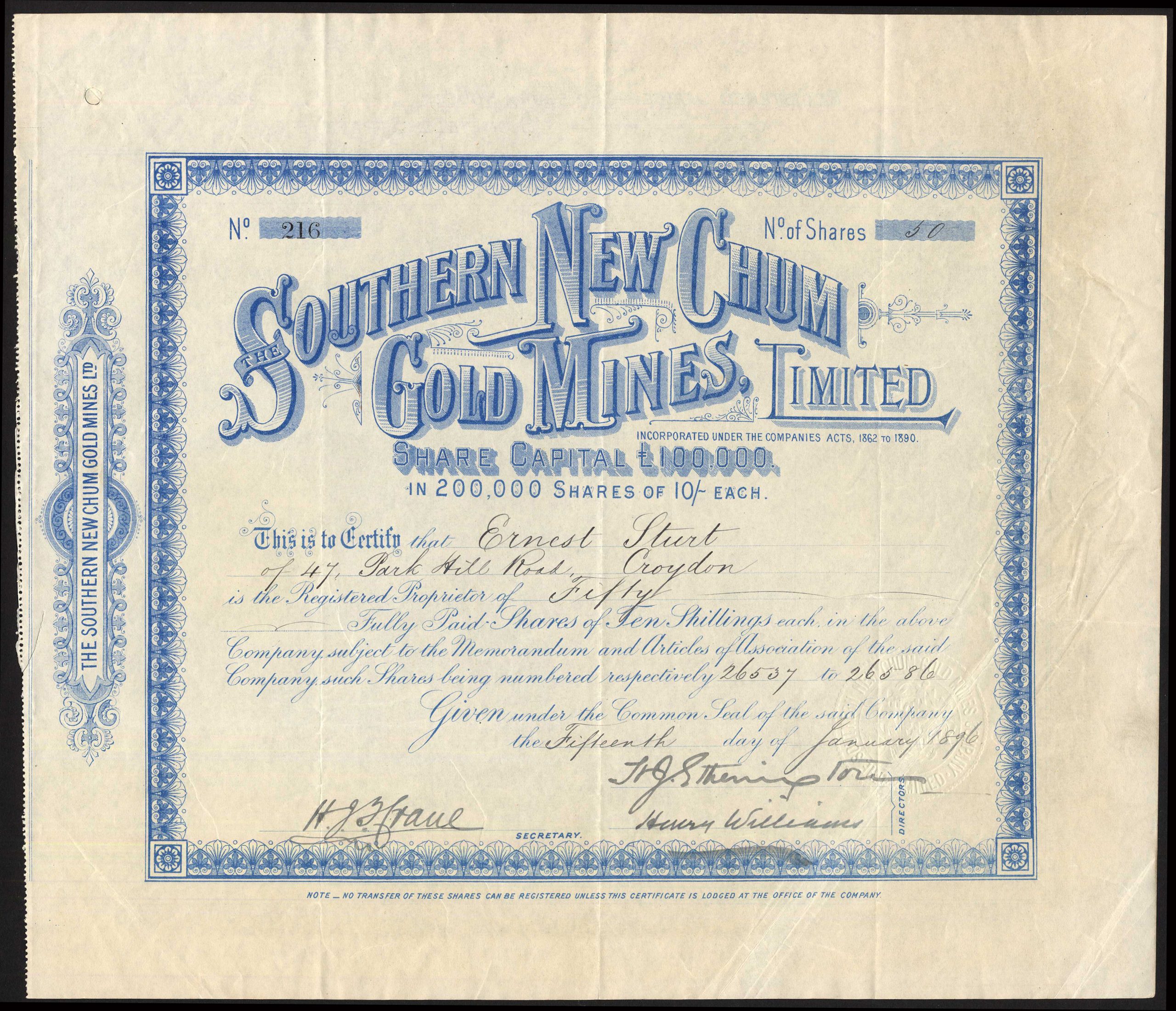 101 | 10/- shares | [1896], blue | #903 | VF | £40 |