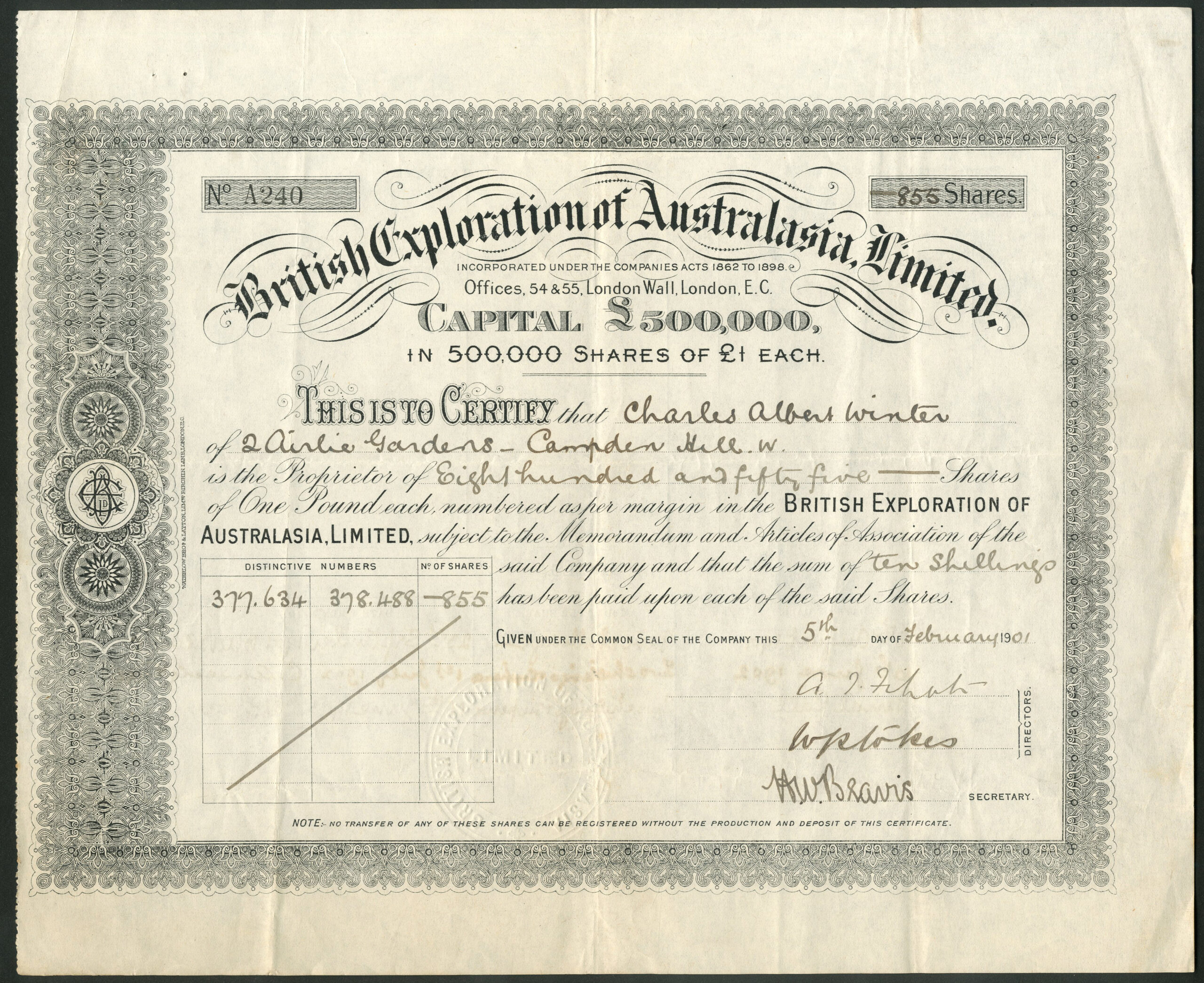 101 | £1 shares | 19[01], part paid, black | #A240 | £40 |