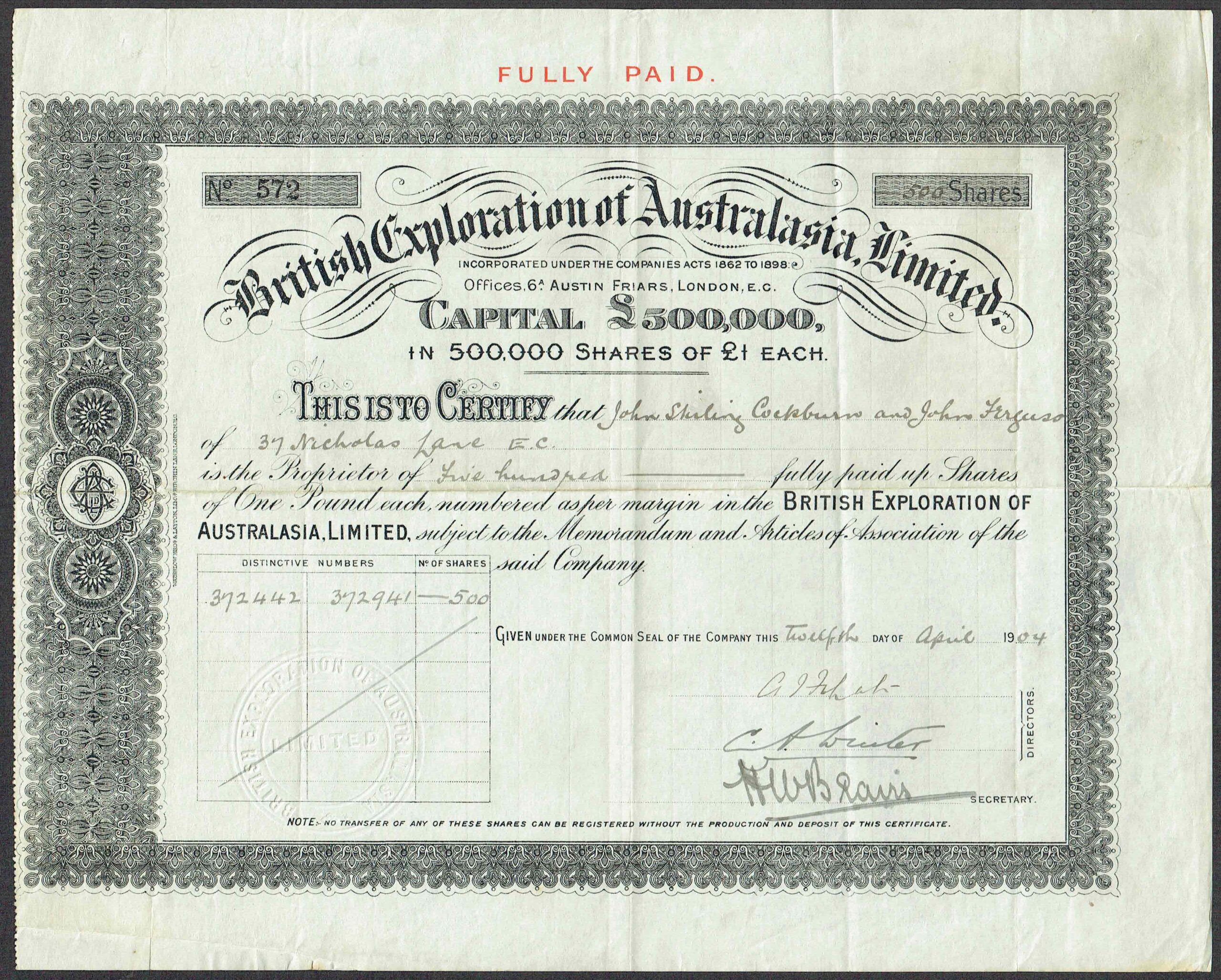 102 | £1 shares | 19[01]-[04], fully paid, black | #31,#572 | £40 |