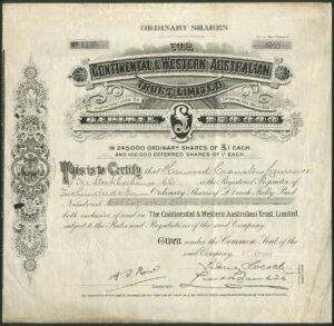 Registered 17th August 1895 as Continental & Western Australian Trust Ltd. Acquired properties in Western Australia but they were unprofitable so they were abandoned and other property in West Africa were acquired. Name changed to Continental Gold Trust Limited in July 1901. Dissolved <1916. Company number 44951