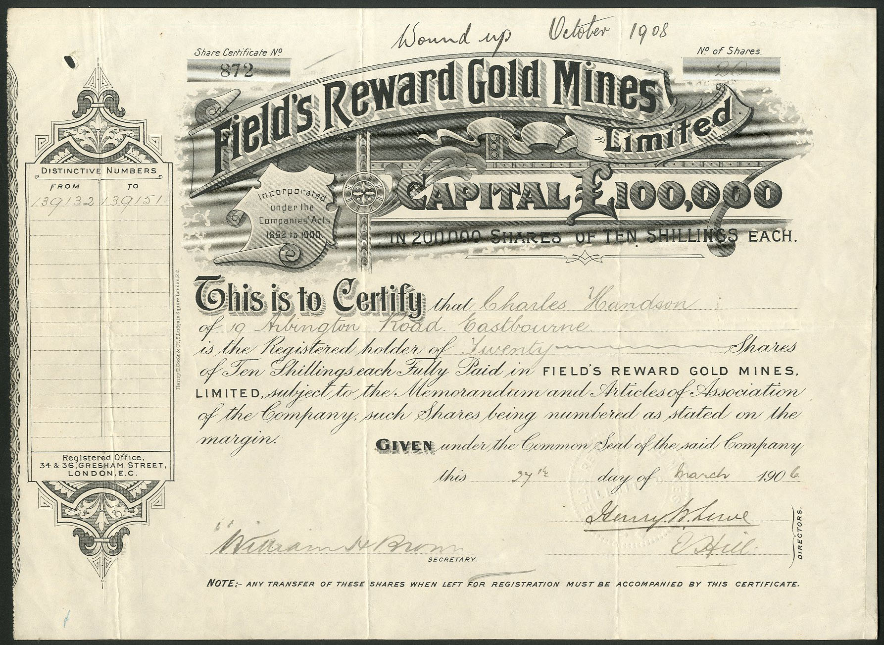 101 | 10/- shares | 190[6], black | #872 | VF | £35 |