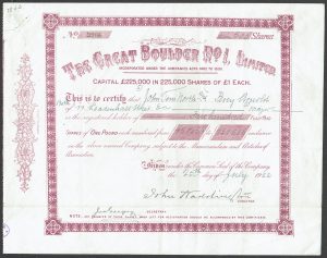Owned a gold mine covering 24 acres at Hannan’s Find, Kalgoorlie, Western Australia.