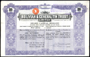 | 103s | 100 shares | 1925 specimen, mauve & black, with coupons | ? | £30 |