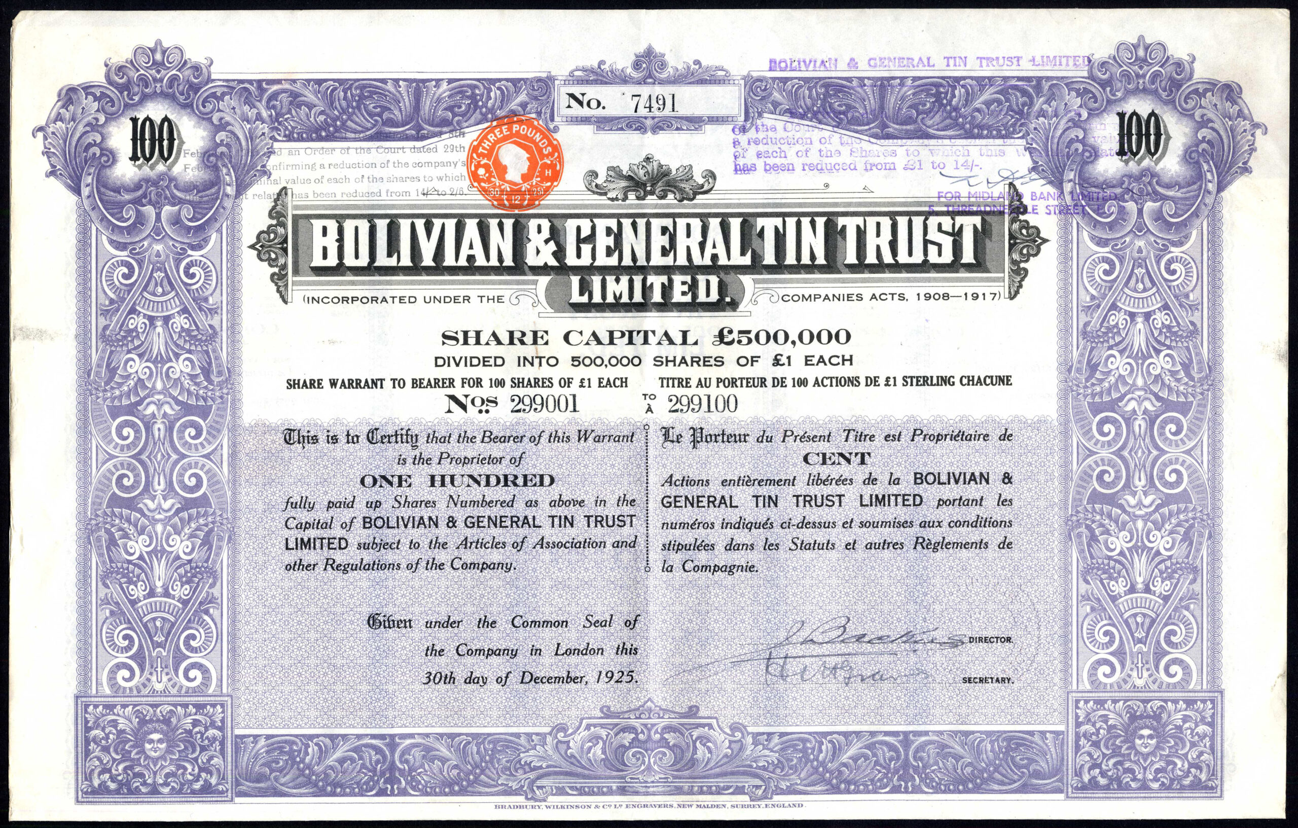 | 103 | 100 shares | 19[25], mauve & black, with coupons | #7491 | £30 |