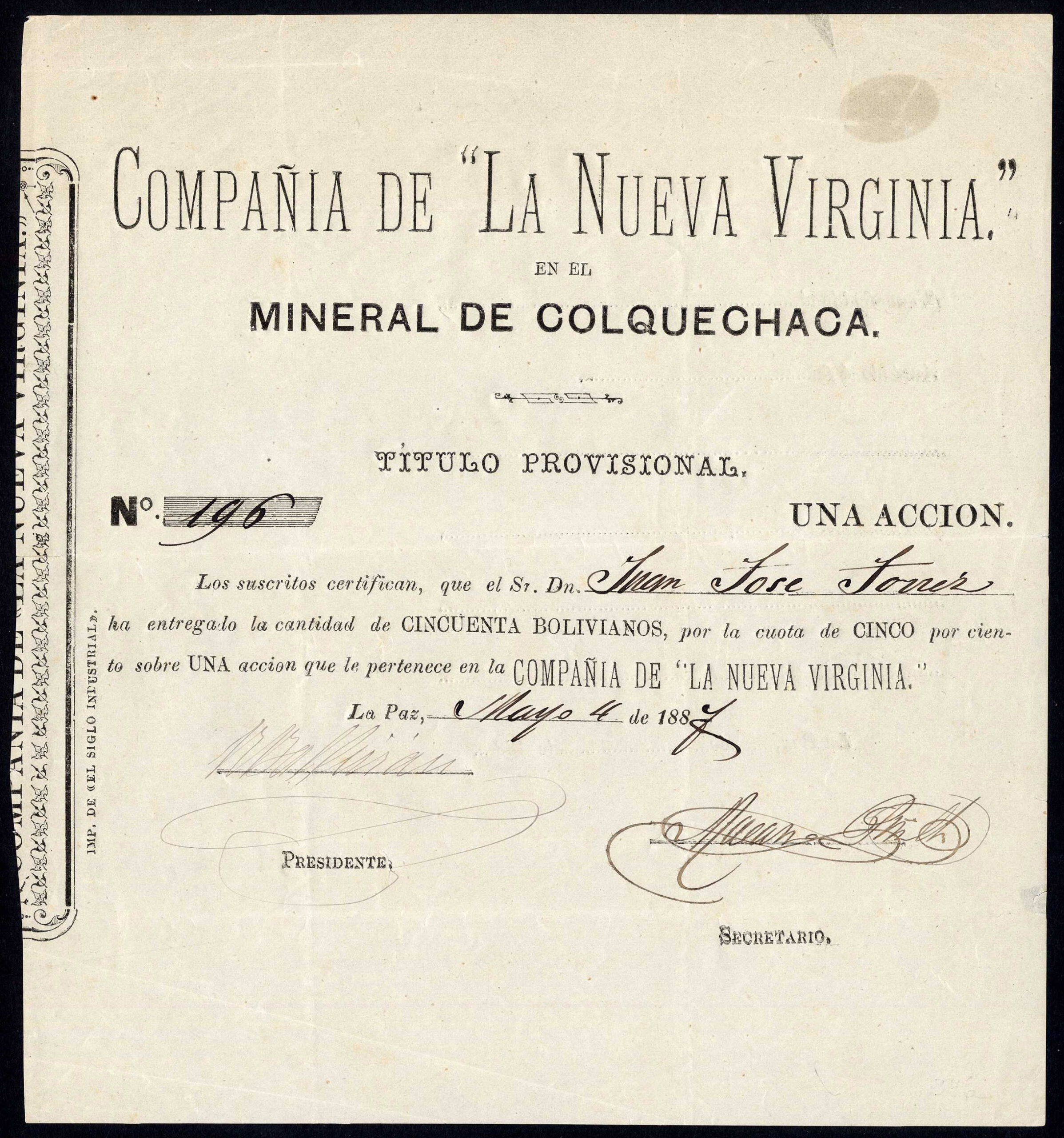 Compañia de “La Nueva Virginia” en el Mineral de Colquechaca