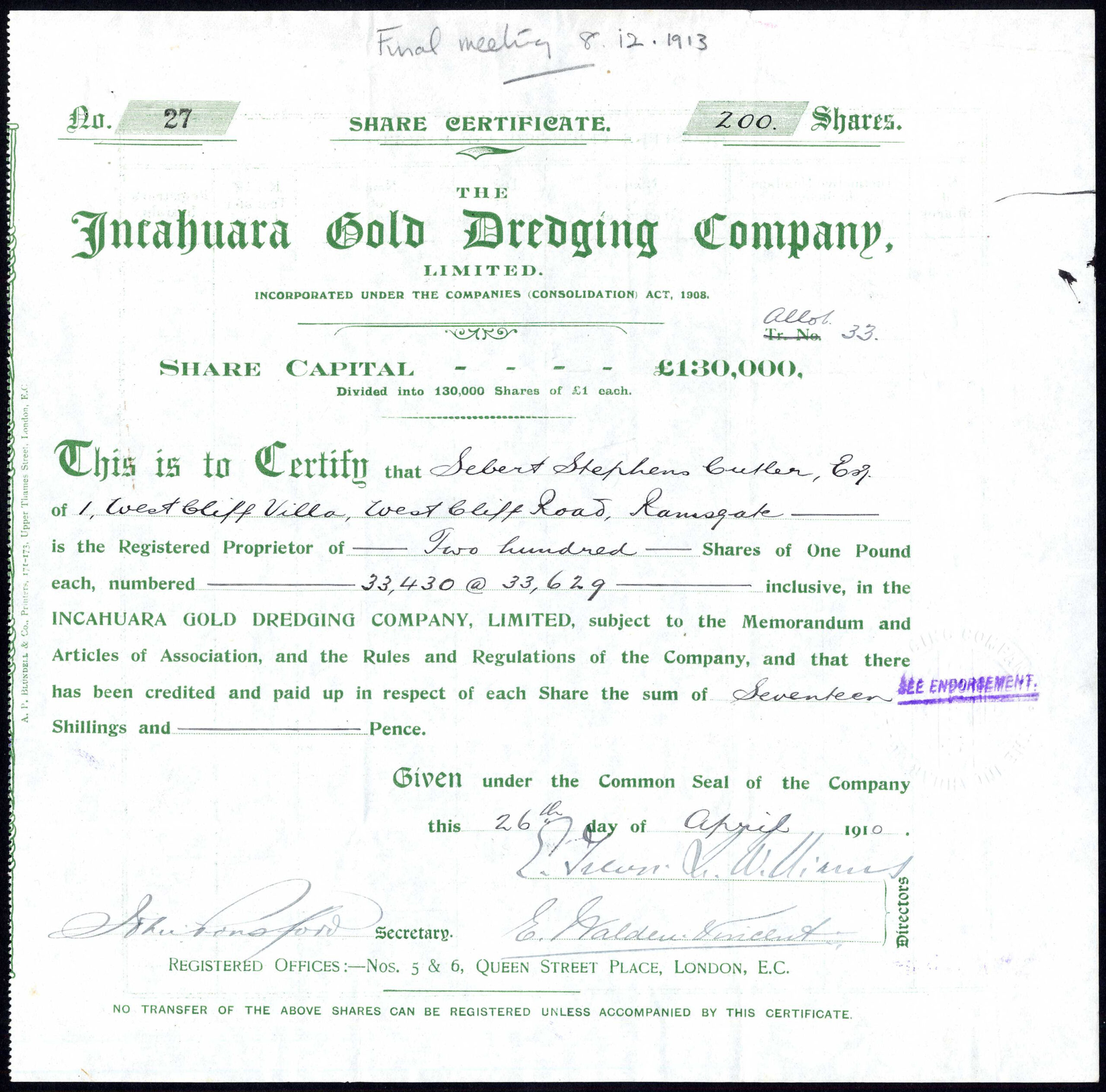 Registered 1910. Dissolved <1916. Company number 107421