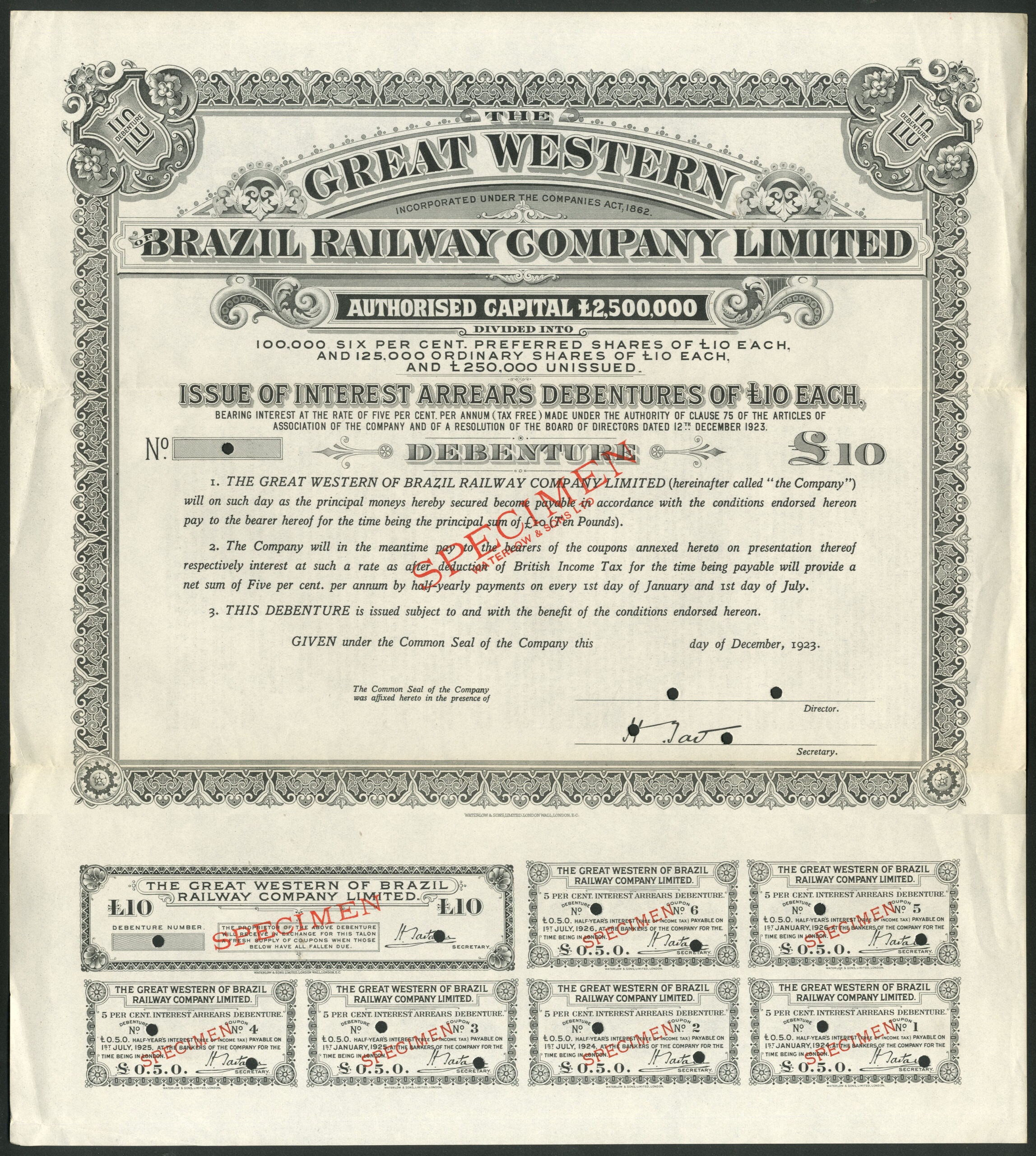 Capital £2,500,000 in 100,000 6% Preferred shares of £10 and 125,000 Ordinary shares of £10 and £250,000 unissued.