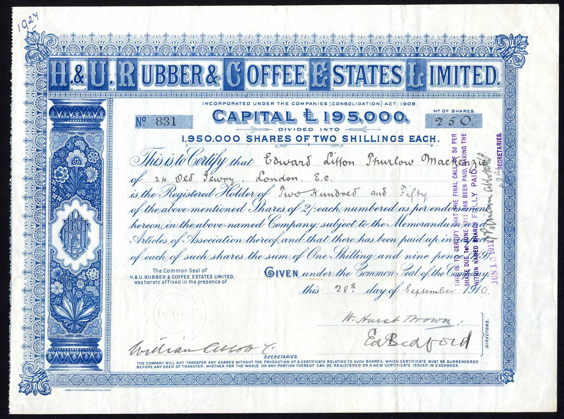 101 | 2/- shares | 191[0], 1/9d paid, blue, pr. Waterlow | #831,#1553 | £30 |