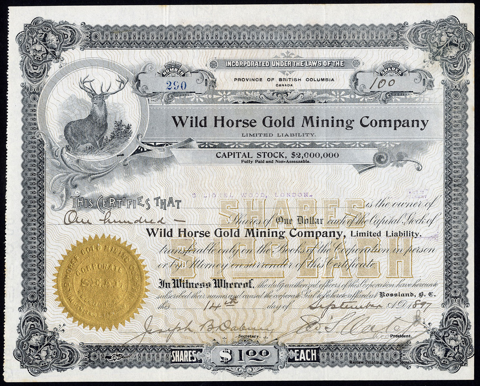 101 | $1 shares | 1[897], gold and black | >290 | VF | £25 |
