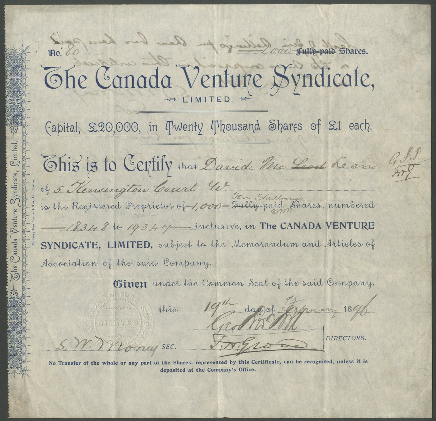 | 101 | £1 shares | 18[96], blue | #80 | £30 |