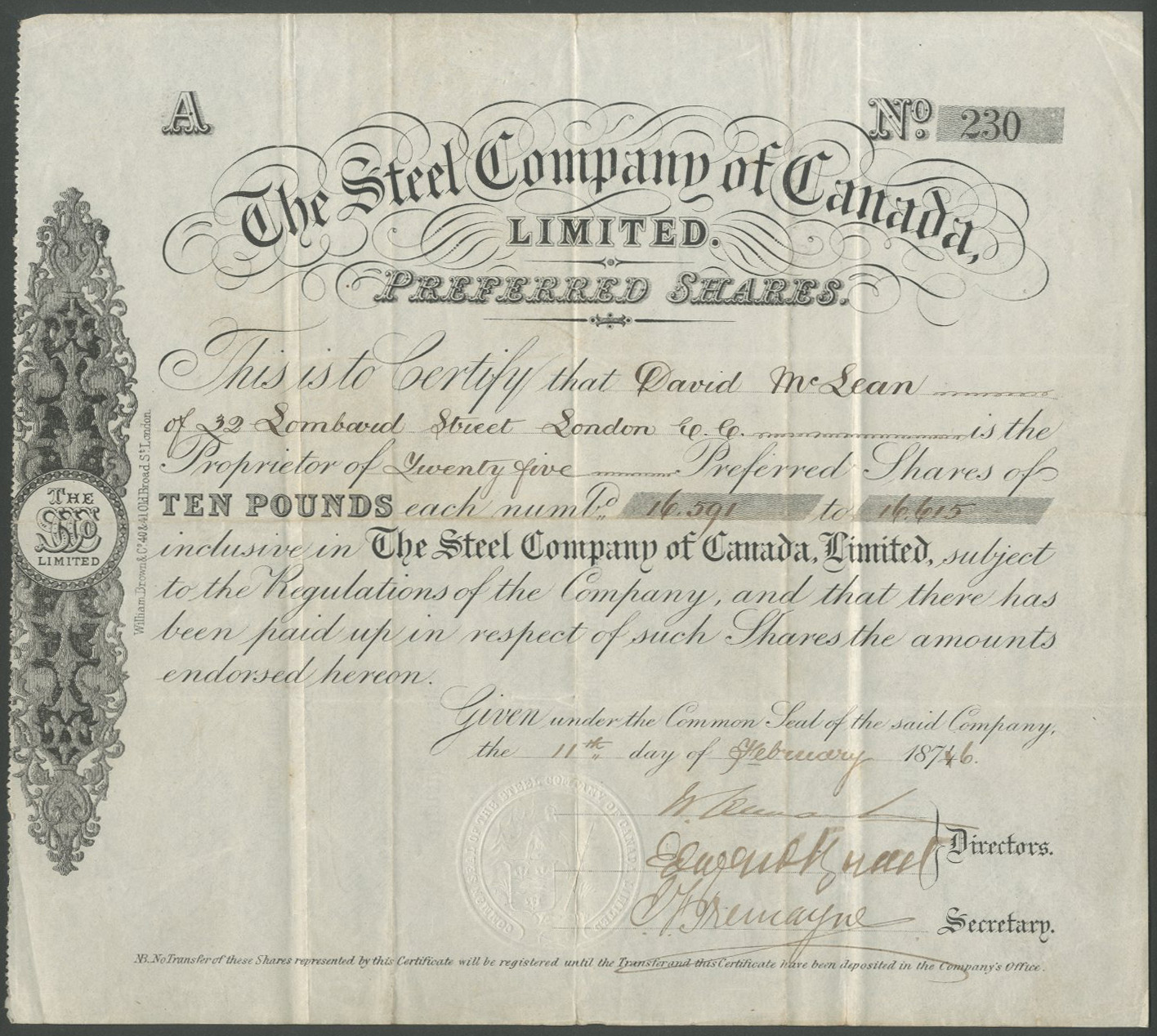 | 101 | Preferred shares | 1874[6], black | #230 | £40 |