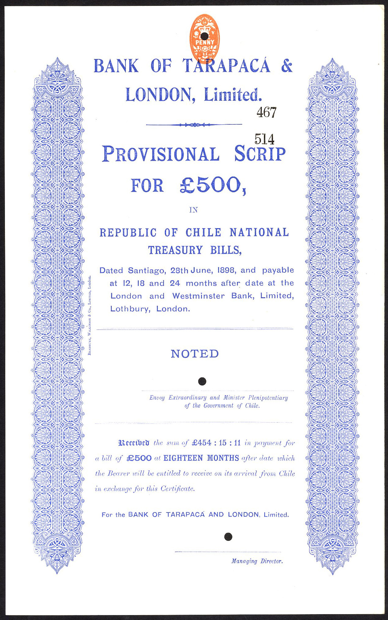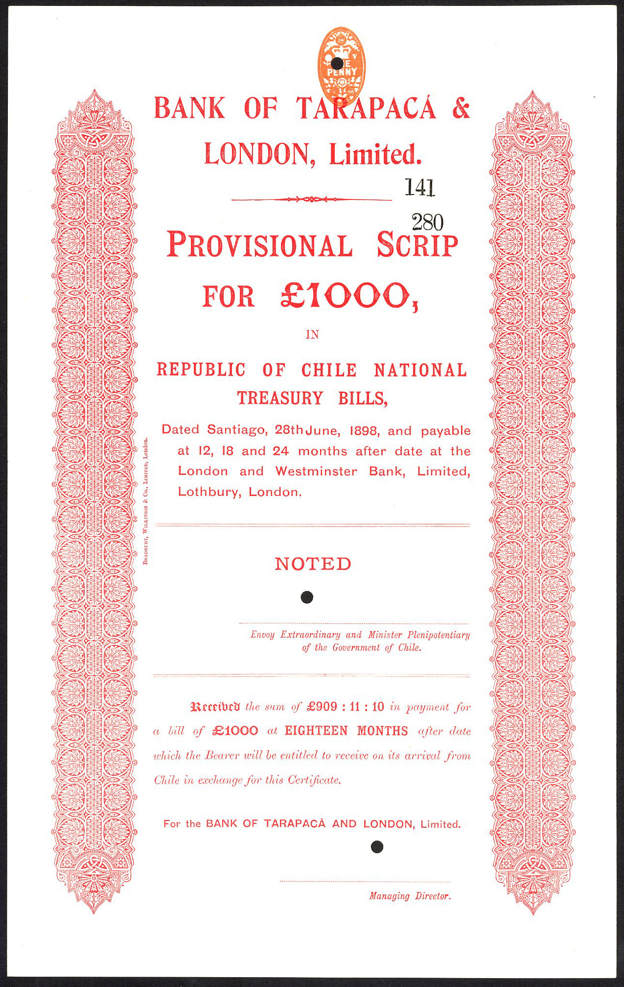 Issue of Short Term Treasury Bills payable in 12, 18 and 24 months, issued 28th June 1898.