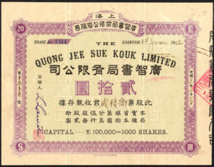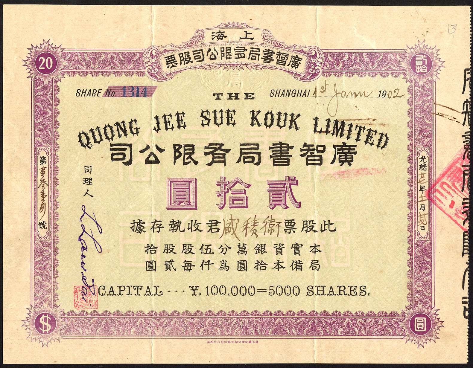 Publishing house formed in 1901. Capital 100,000 yuan in shares of 20 yuan.