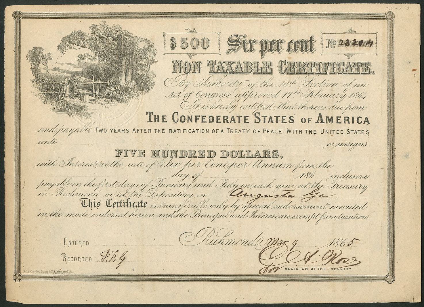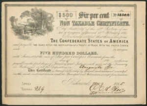 Confederate States of America: Act of 17th February 1864, 6% Non Taxable Certificates