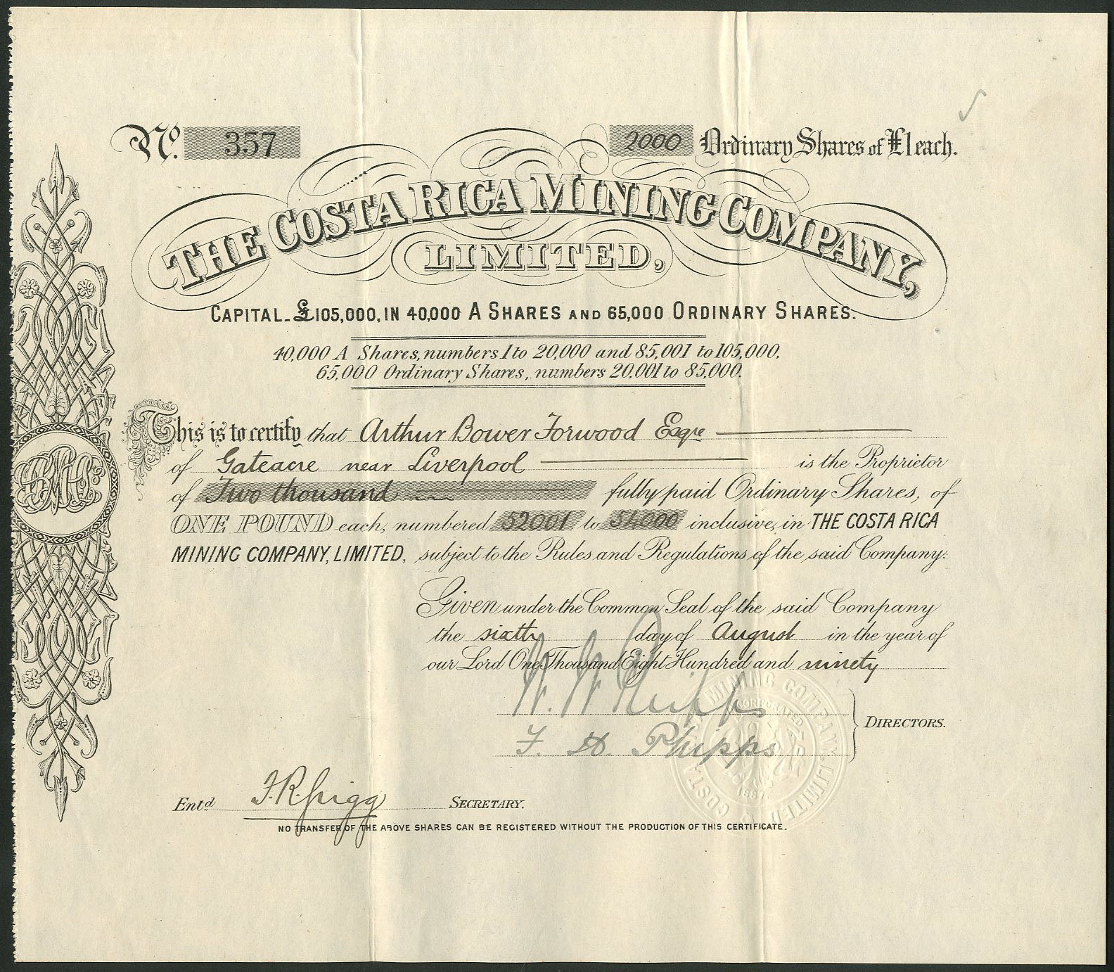 Capital £105,000 in 40,000 ‘A’ shares and 65,000 ordinary shares.