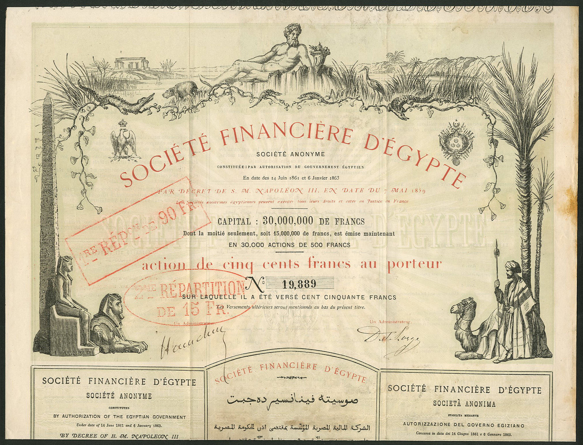 Capital 30,000,000 francs in shares of 500 francs.