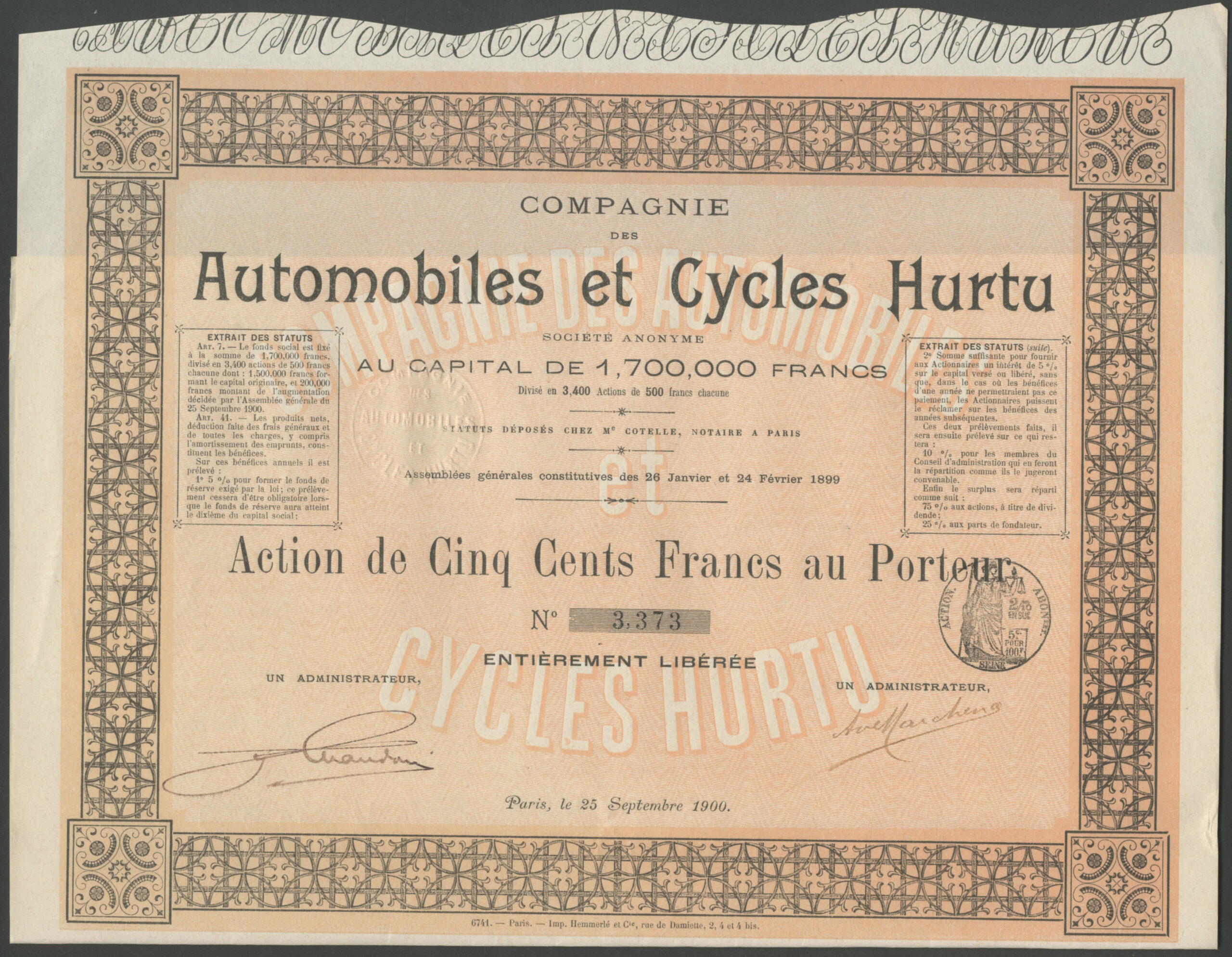 | 102 | Action | 1900, black, pink underprint, with coupons | 400? | €80 |