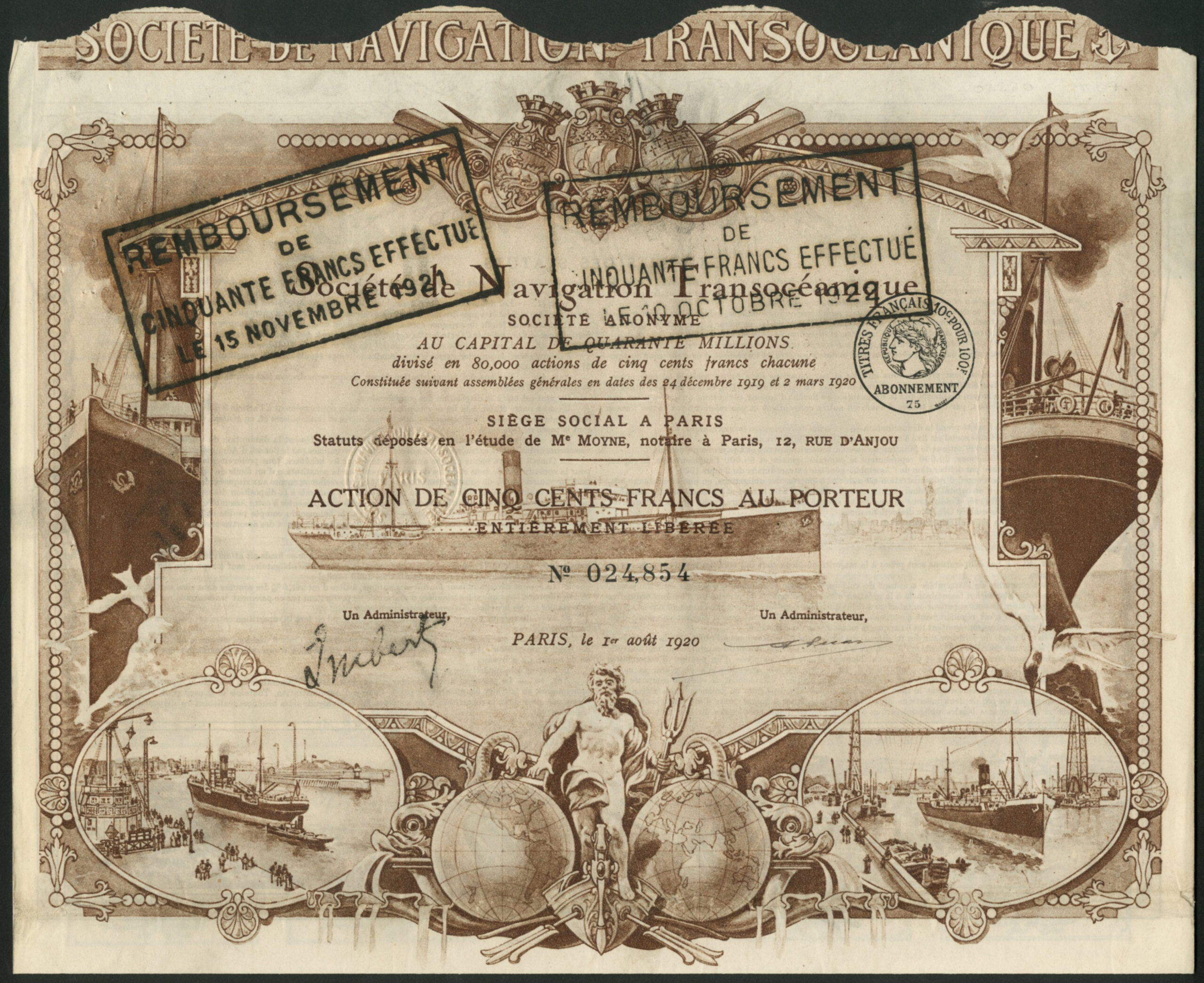 | 1920 6% Obligations Authorised 50,000,000 francs |