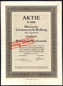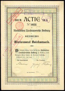 Founded in 1897 by Adolf Silverberg to become one of the largest employers in the area. In 1899, Richard Holtkott took over management and his family have shaped the company’s fortunes ever since. The company produced linoleum and also Lincrusta wallpapers and wool felt flooring and owned its own linseed oil factory, jute spinning mill and research laboratory. The company had branches in Berlin and Vienna and was the second-largest German linoleum factory after DLW AG.