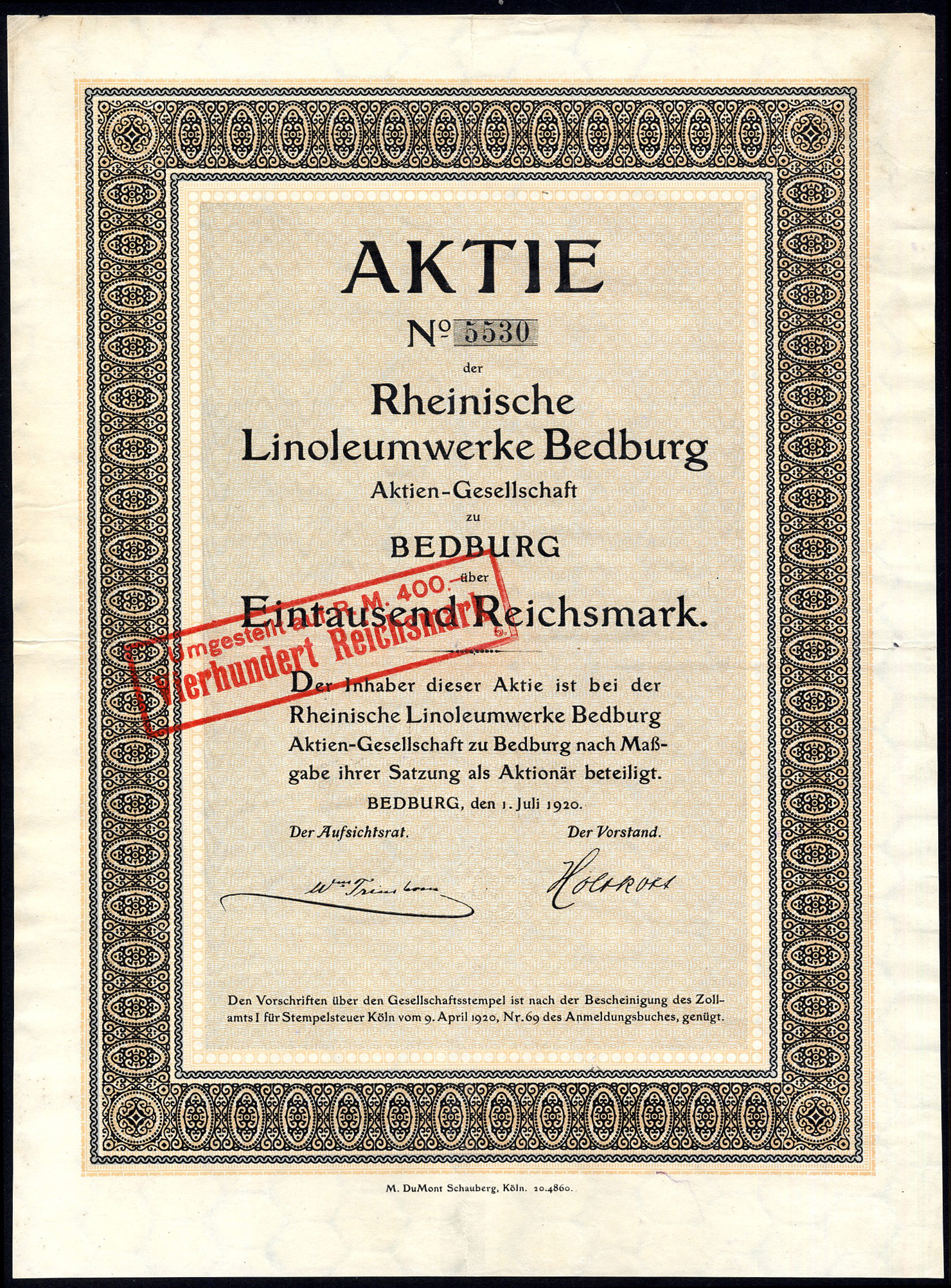 | 102 | Aktie | 1920, brown and pink, NO coupons | – | €20 |