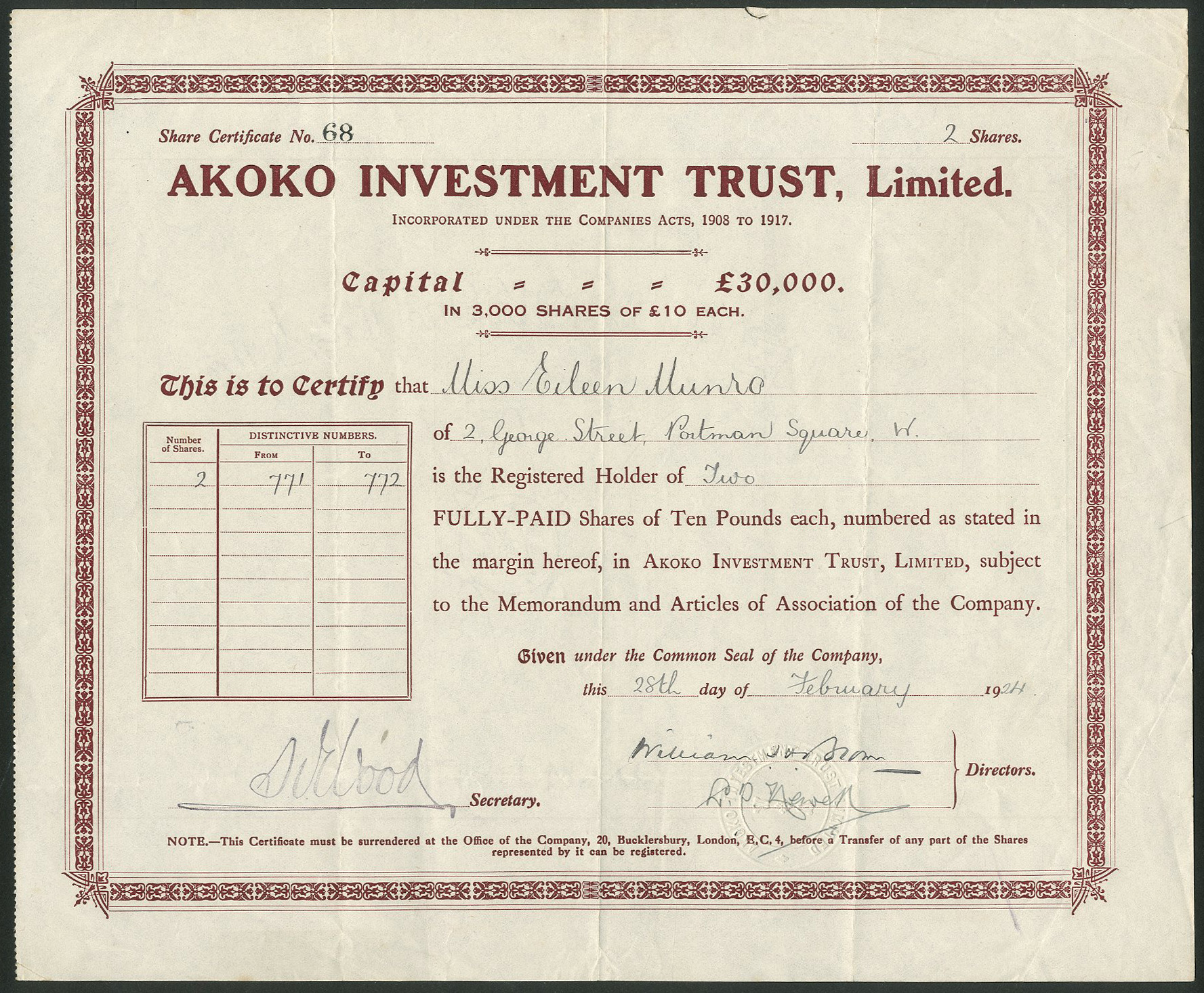 101 | £10 shares | 19[24], brown | #68 | £20 |