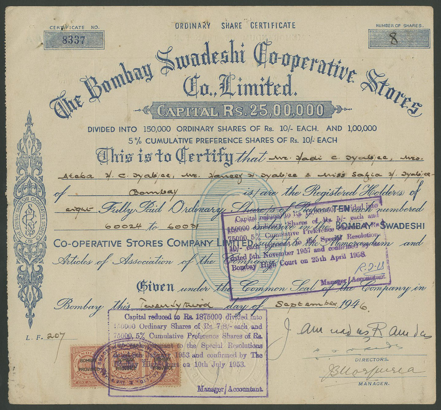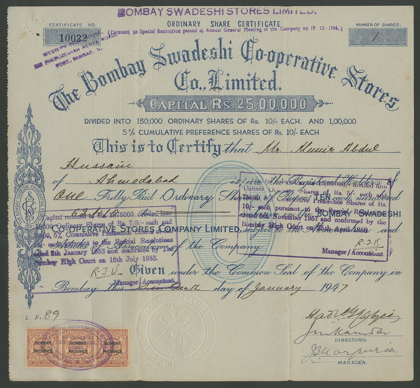 Registered in Bombay. Name changed in 1965 to Bombay Swadeshi Stores Limited.