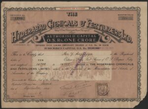 Capital 10,000,000 Osmania Sicca Rupees in 200,000 shares of 50 rupees.