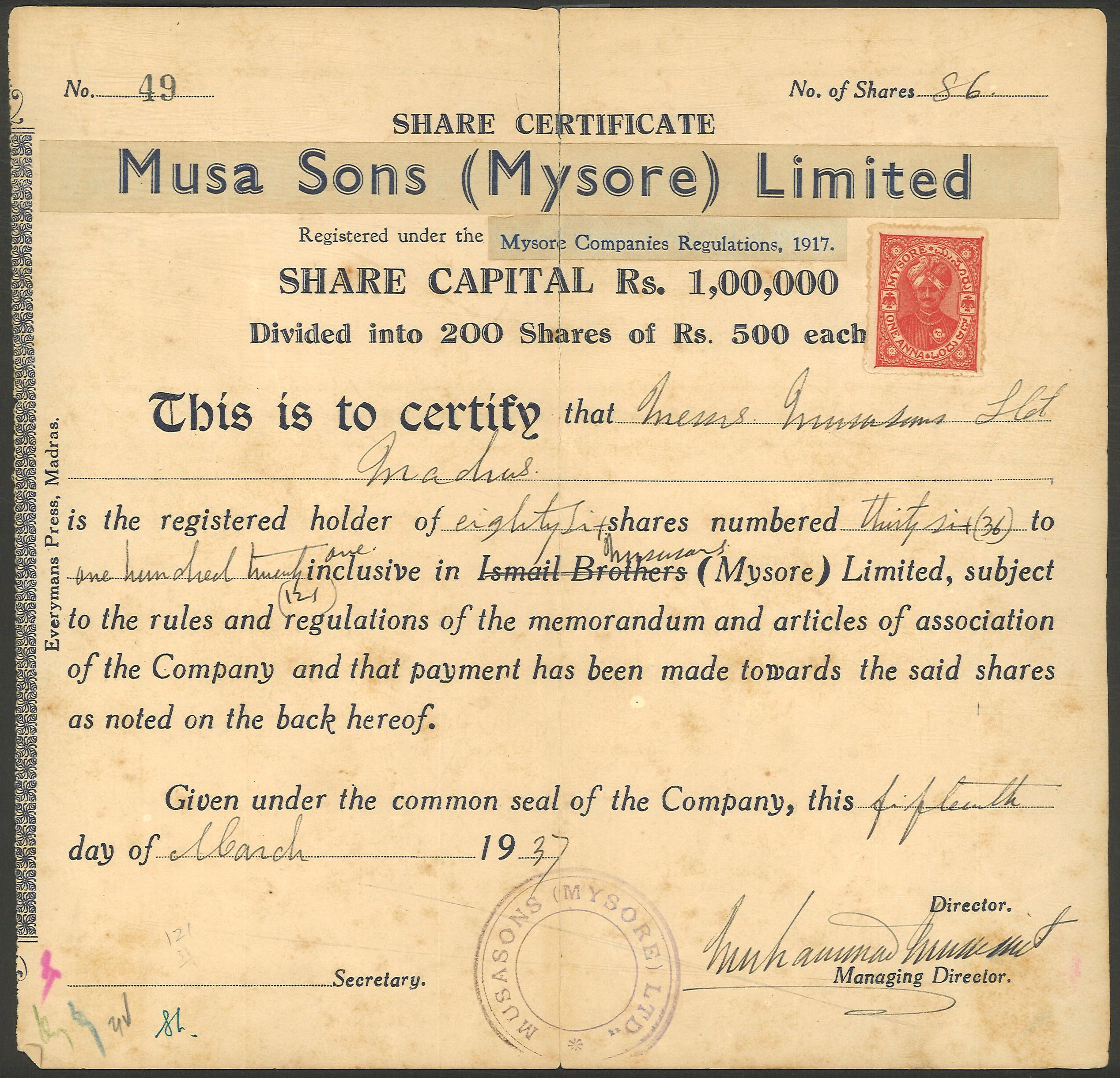 Registered under the Mysore Companies Regulations of 1917. Previously Ismail Brothers (Mysore) Limited.