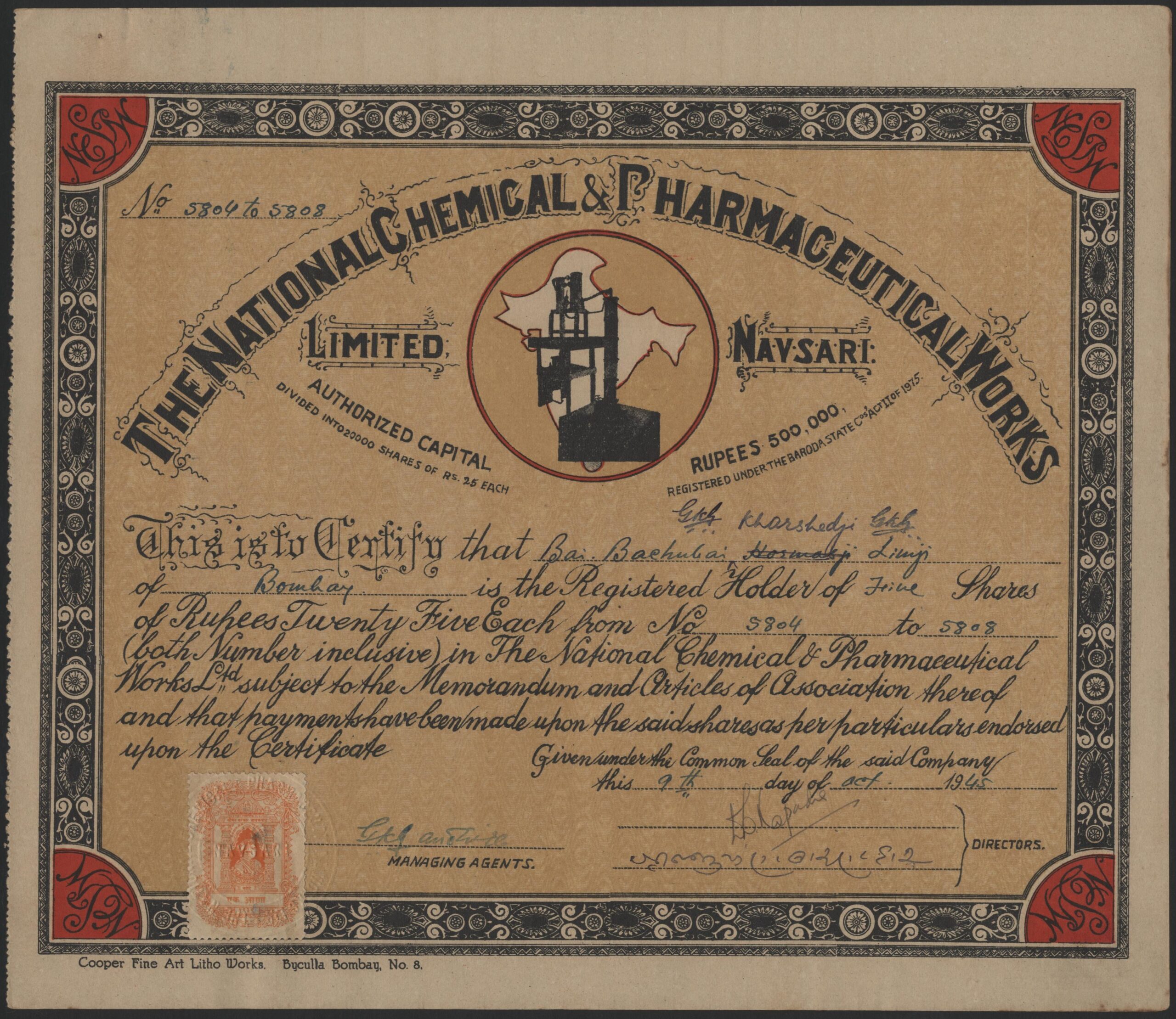 Incorporated under the Baroda State Companies Act. Head Office Navsari.