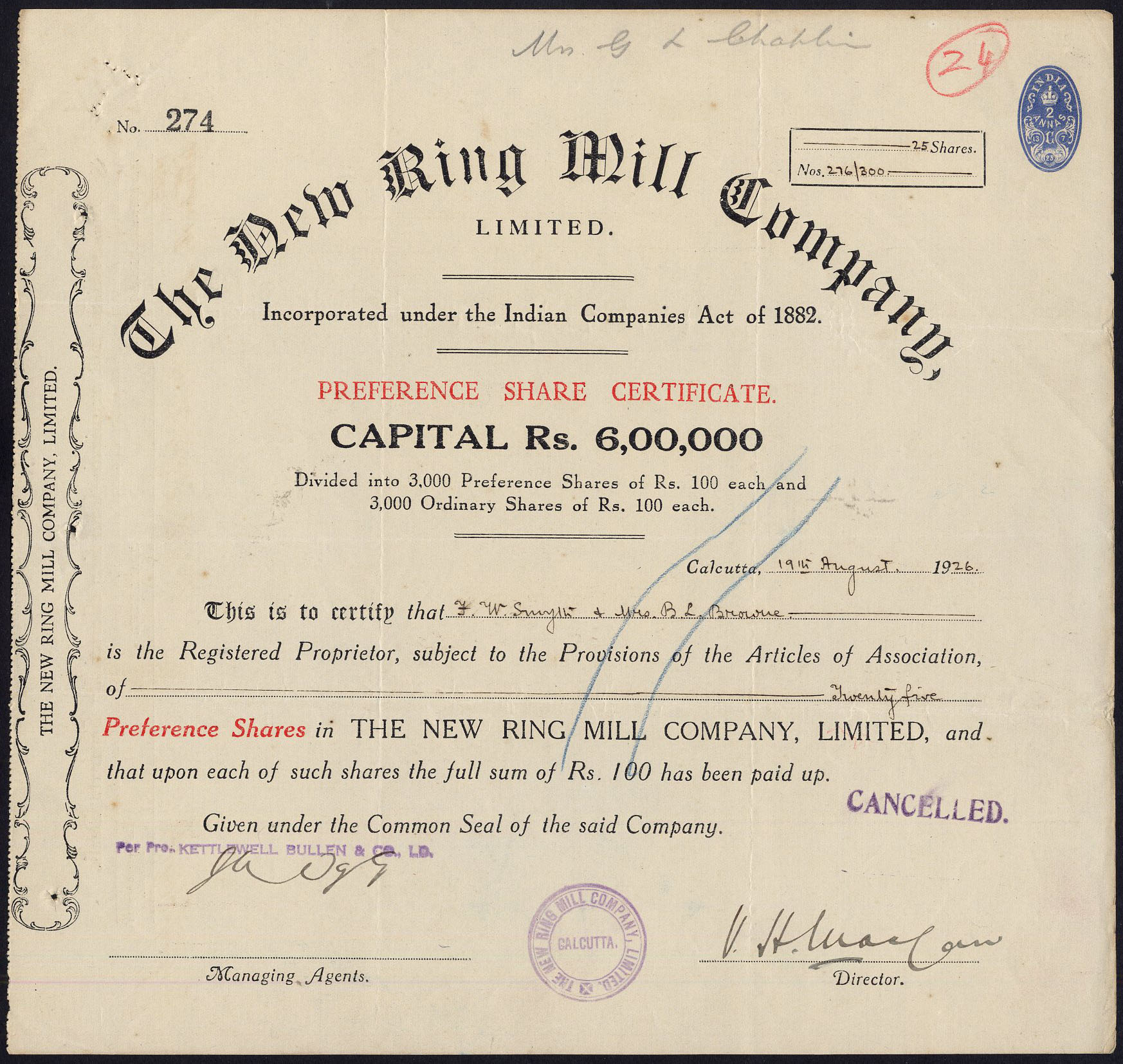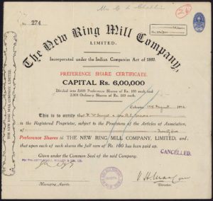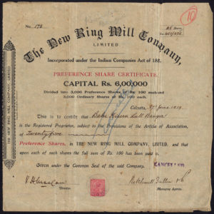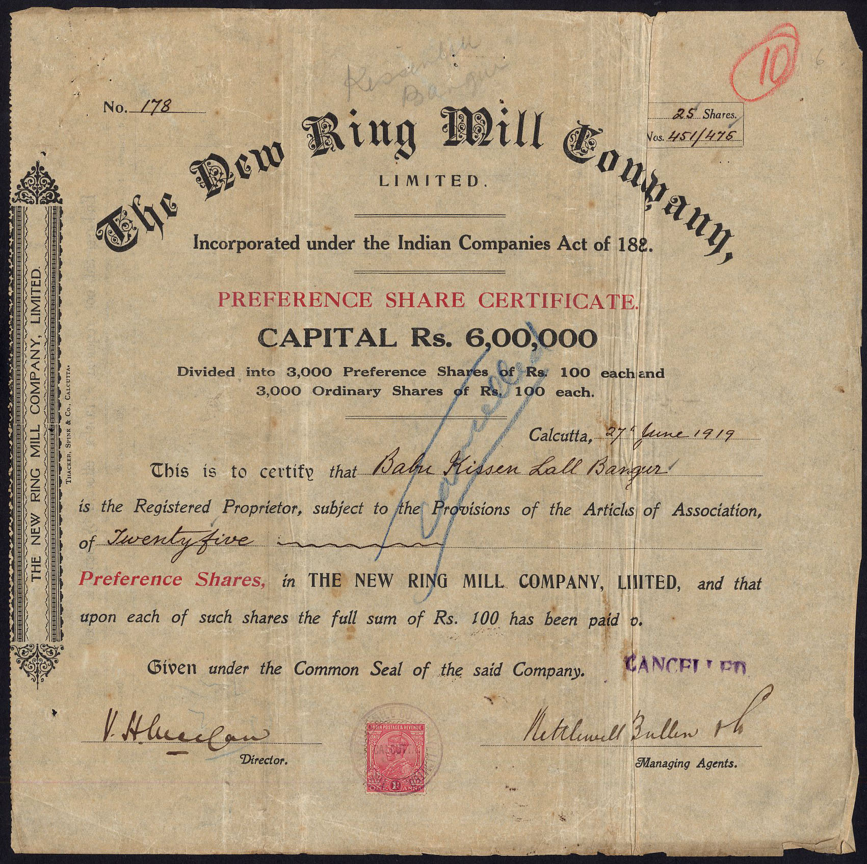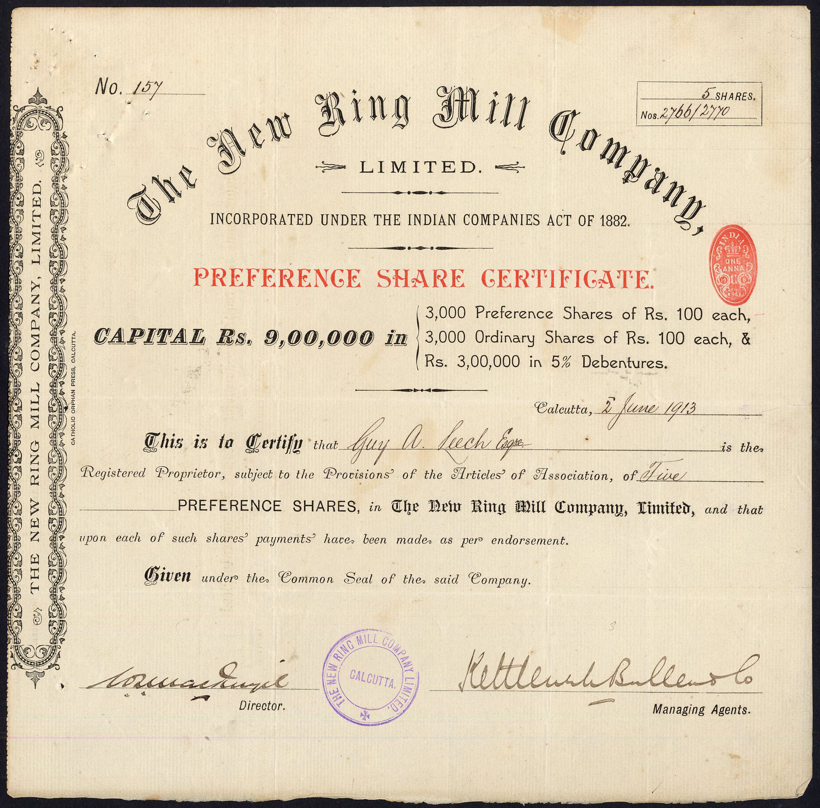 Capital 9,00,000 rupees in 3,000 ordinary shares of 100 rupees and 3,000 Preference shares of 100 rupees.