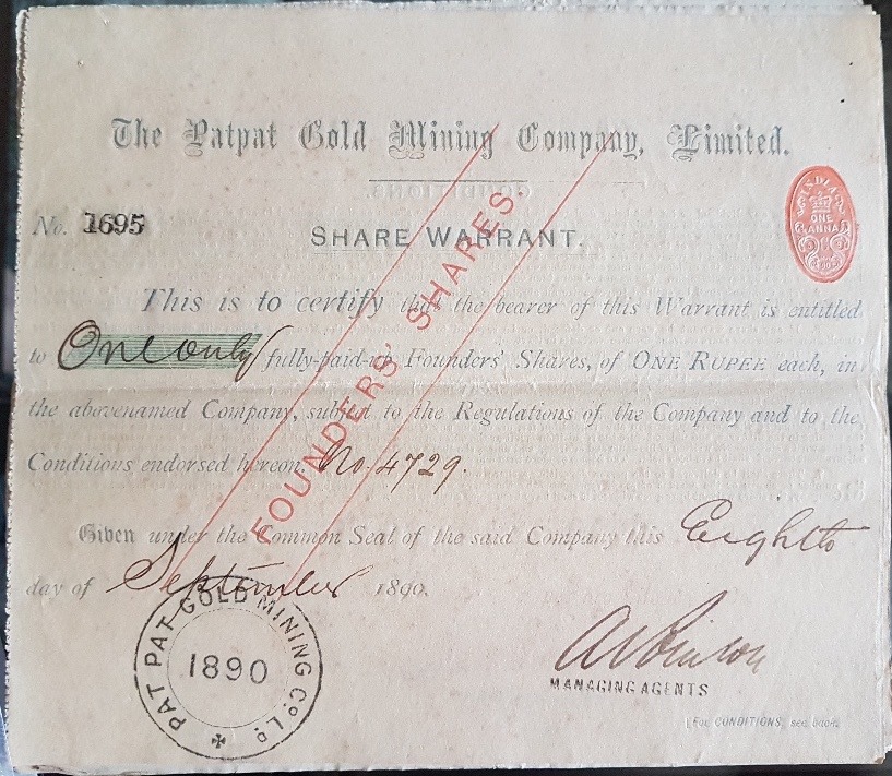 101 | founders shares | 1890, grey, red ovpt FOUNDERS SHARES | >1695 | VF | £30 |