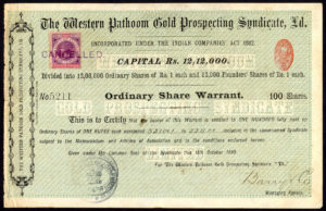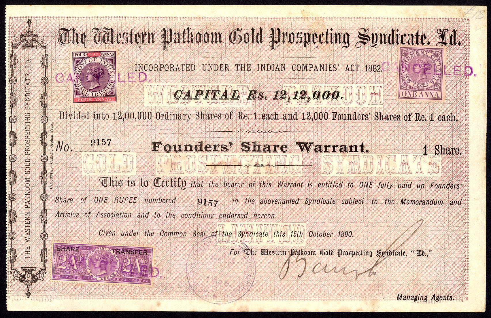 Capital 12,12,000 rupees in 12,00,000 ordinary shares and 12,000 founders’ shares of 1 rupee.