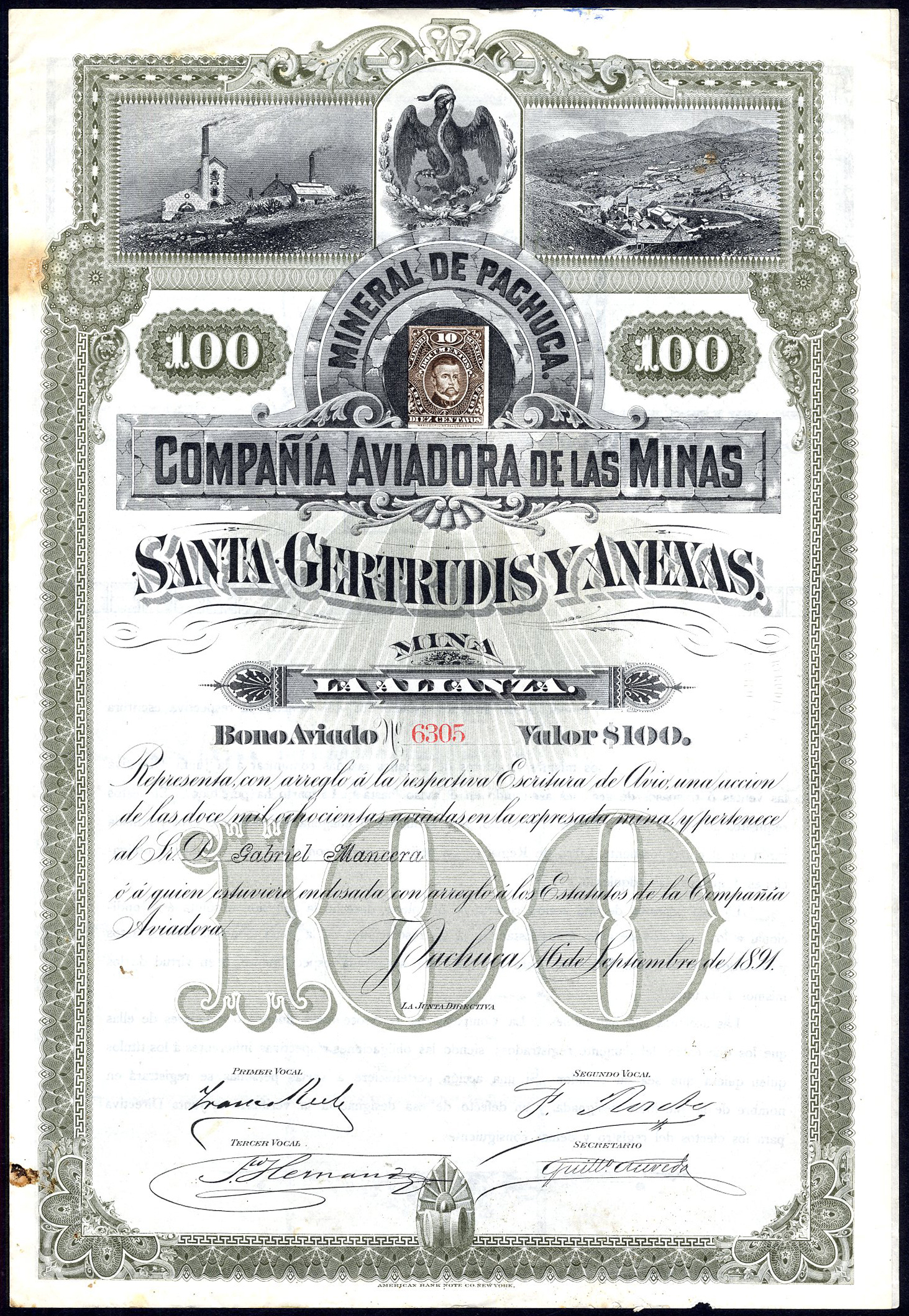 Formed in Mexico by 1891 with Head Office in Pachuca. Alianza Mine in Pachuca.