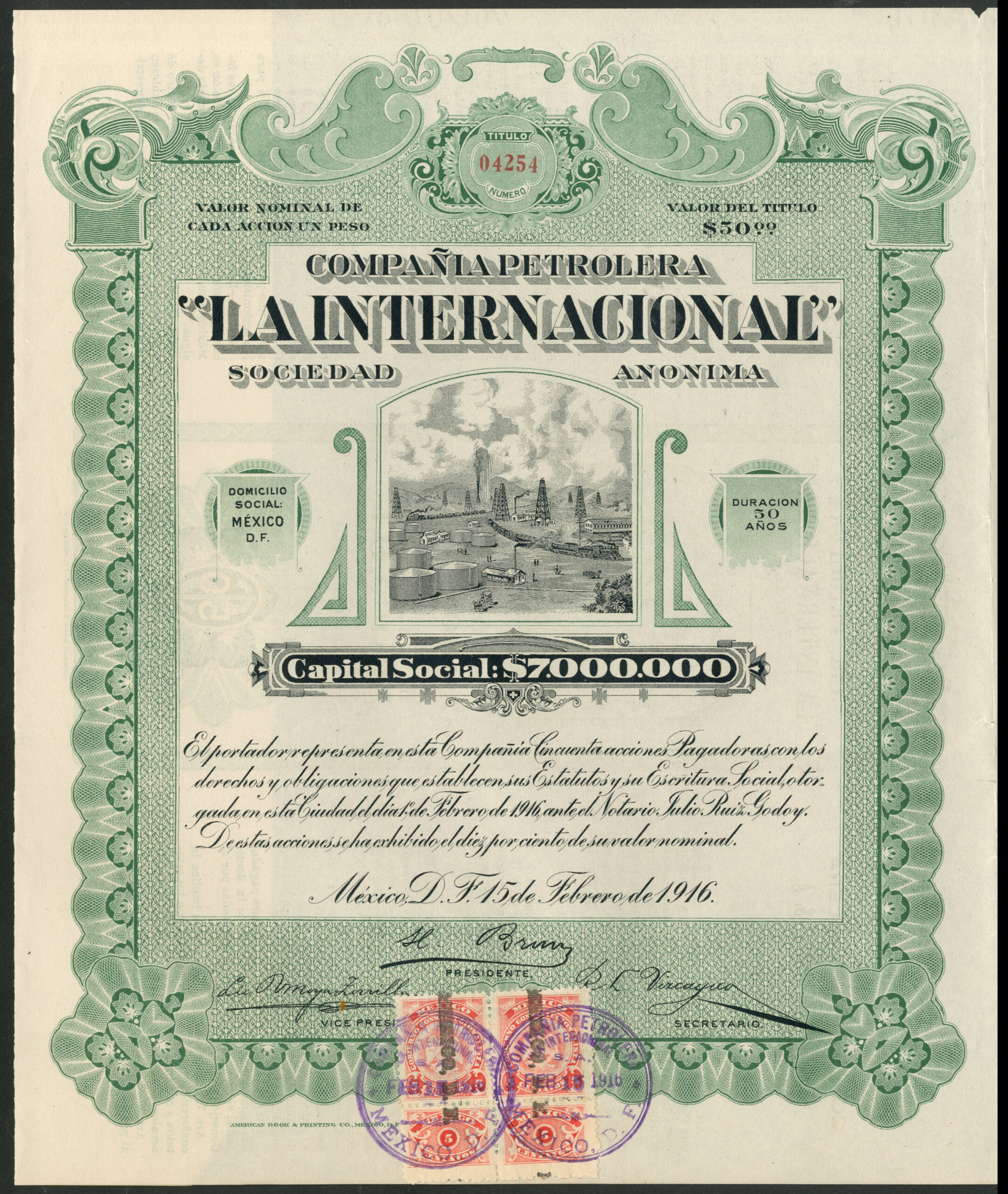 Constituted 1st February 1916 with Head office in Mexico City. Capital $7,000,000 in shares of $1.