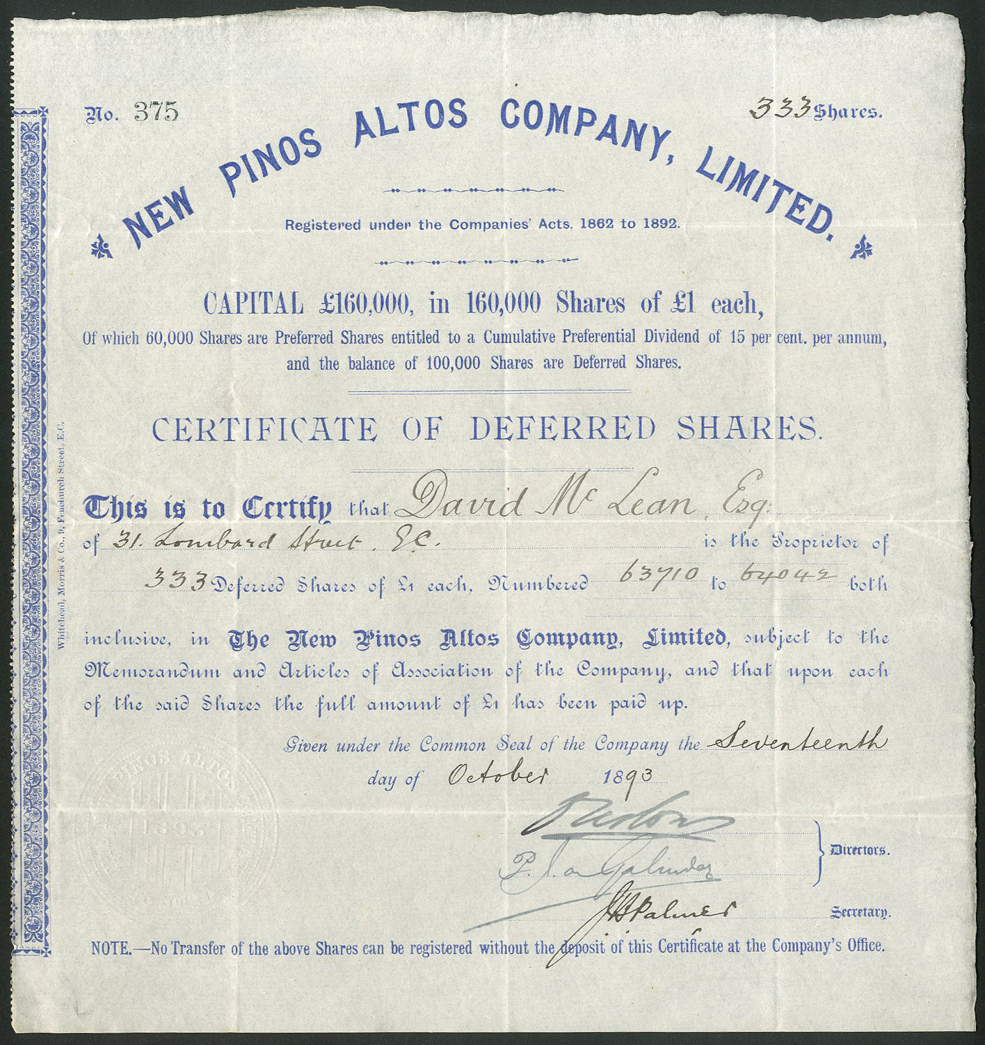 102 | Deferred shares | 18[93], blue | #375 | VF | £25-30 |