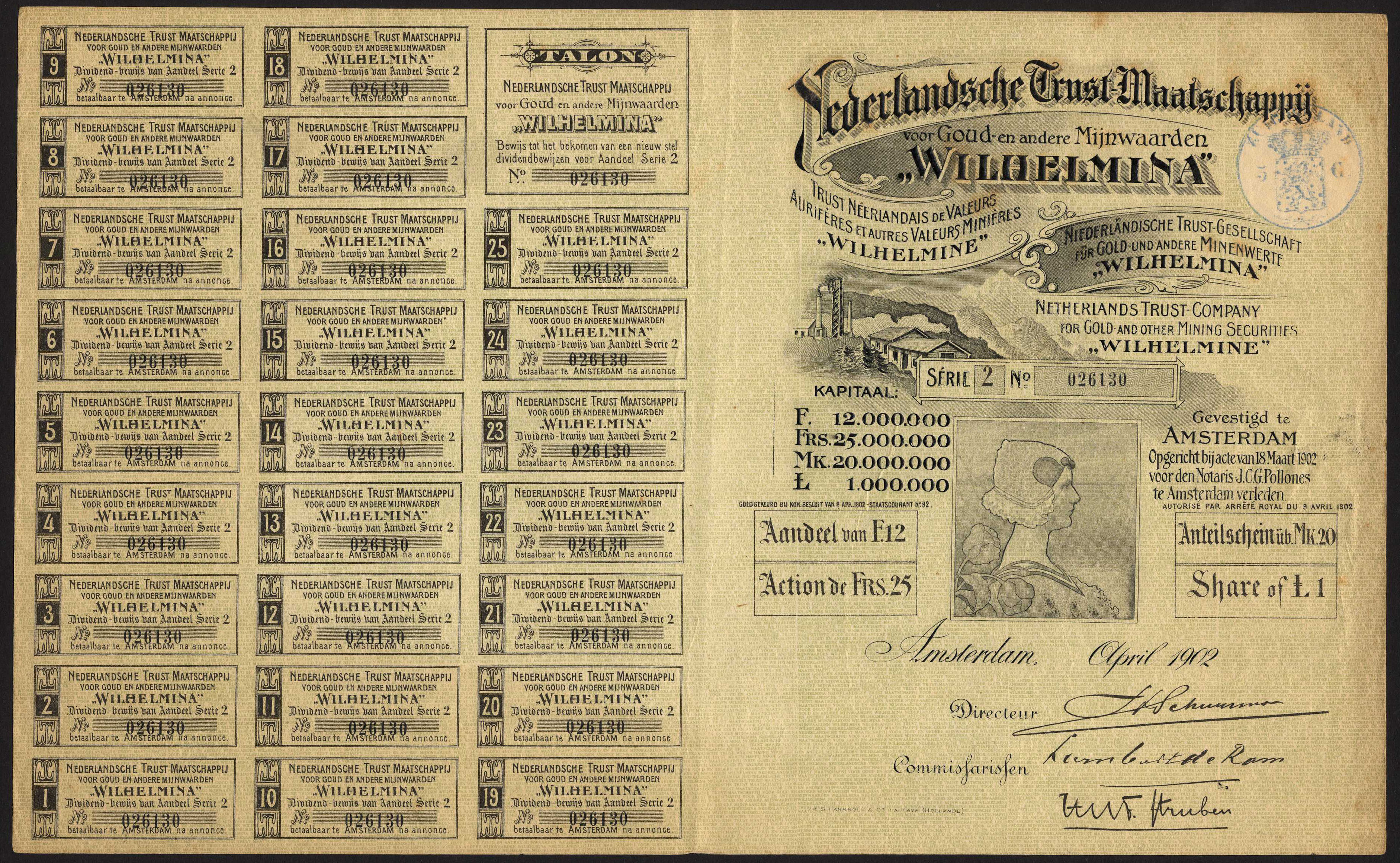 Formed in 1902 in Amsterdam. Capital 12,000,000 gulden in shares of 12 gulden.