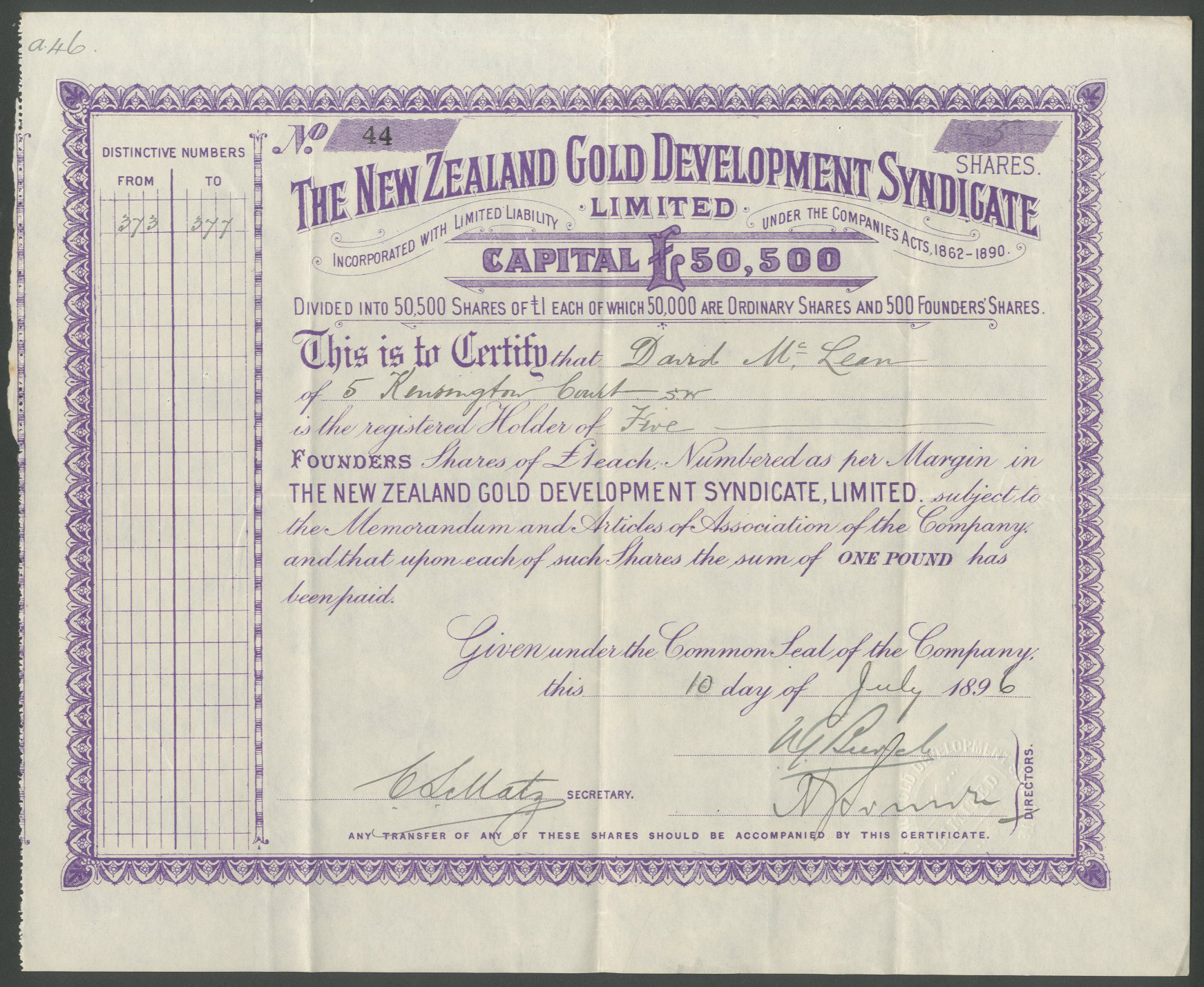 | 101 | Founders shares | 189[6], purple | #44 | £40 |