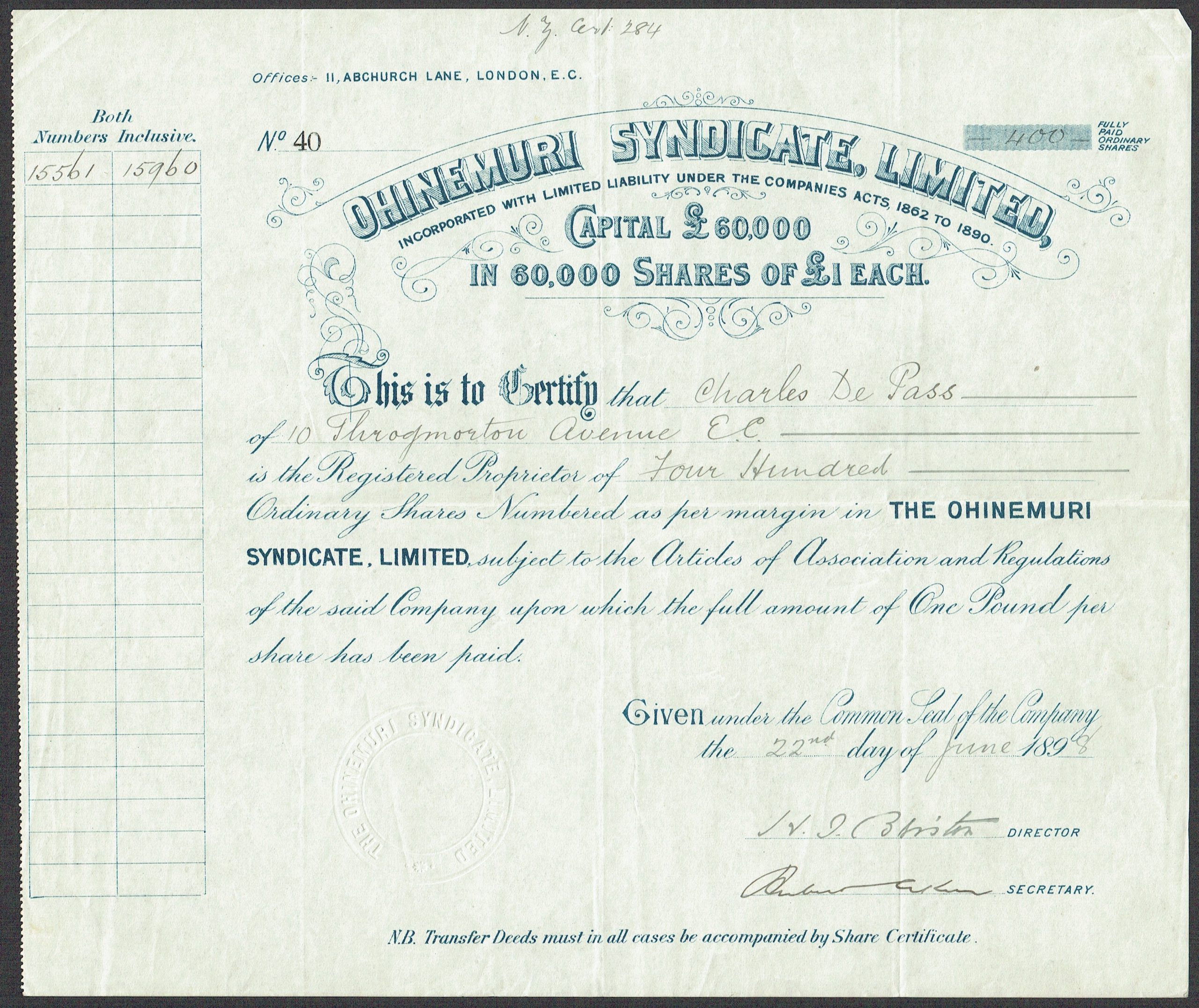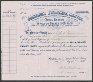 Registered 24th of December 1895 to acquire the property of the Owharoa Gold Mining Company. Dissolved <1916. Company number 46373.