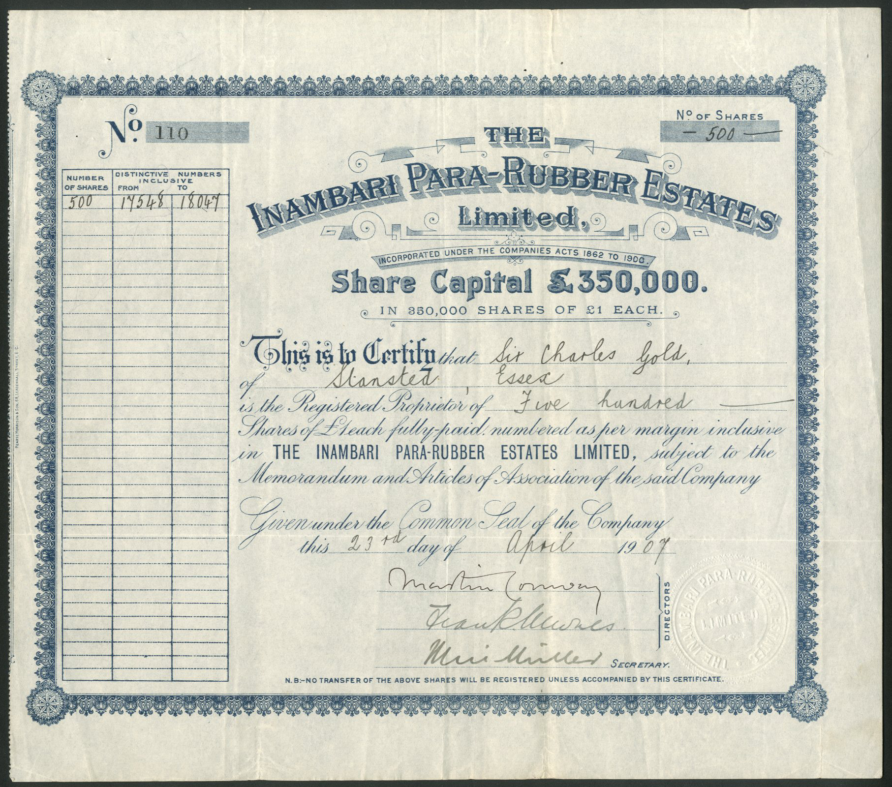 Registered 29th January 1907 to acquire 273,000 acres along the Inambari in the Province of Carabaya, Peru. Dissolved <1932. Company number 91858