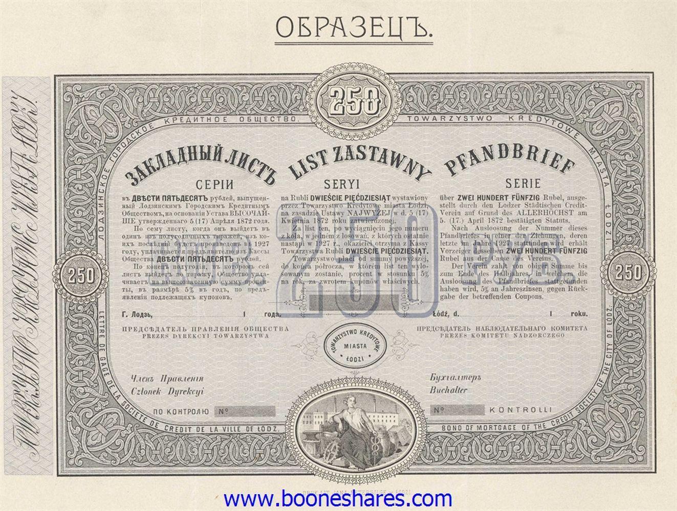 Founded in 1872 in Lodz (now in Poland). The total amount of bonds outstanding in 1919 was 45,647,200 roubles.