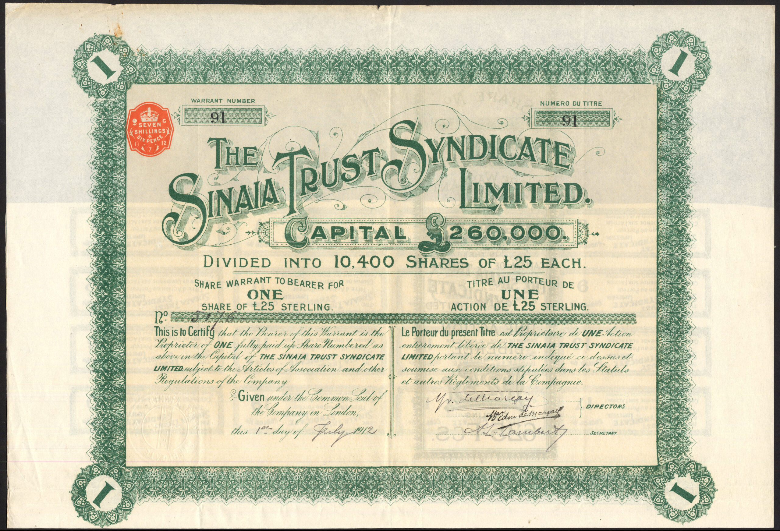 Registered 1912. Dissolved <1932. Company number 122151 Capital £260,000 in shares of £25.