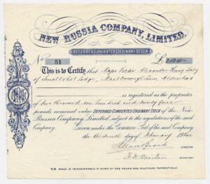 Registered 1869 by Welshman, John Hughes, to operate heavy industries in the Ukraine. The town which grew around the factories was known as Hughesovska and the company was nationalised by the Soviet Government. Company number 4467.