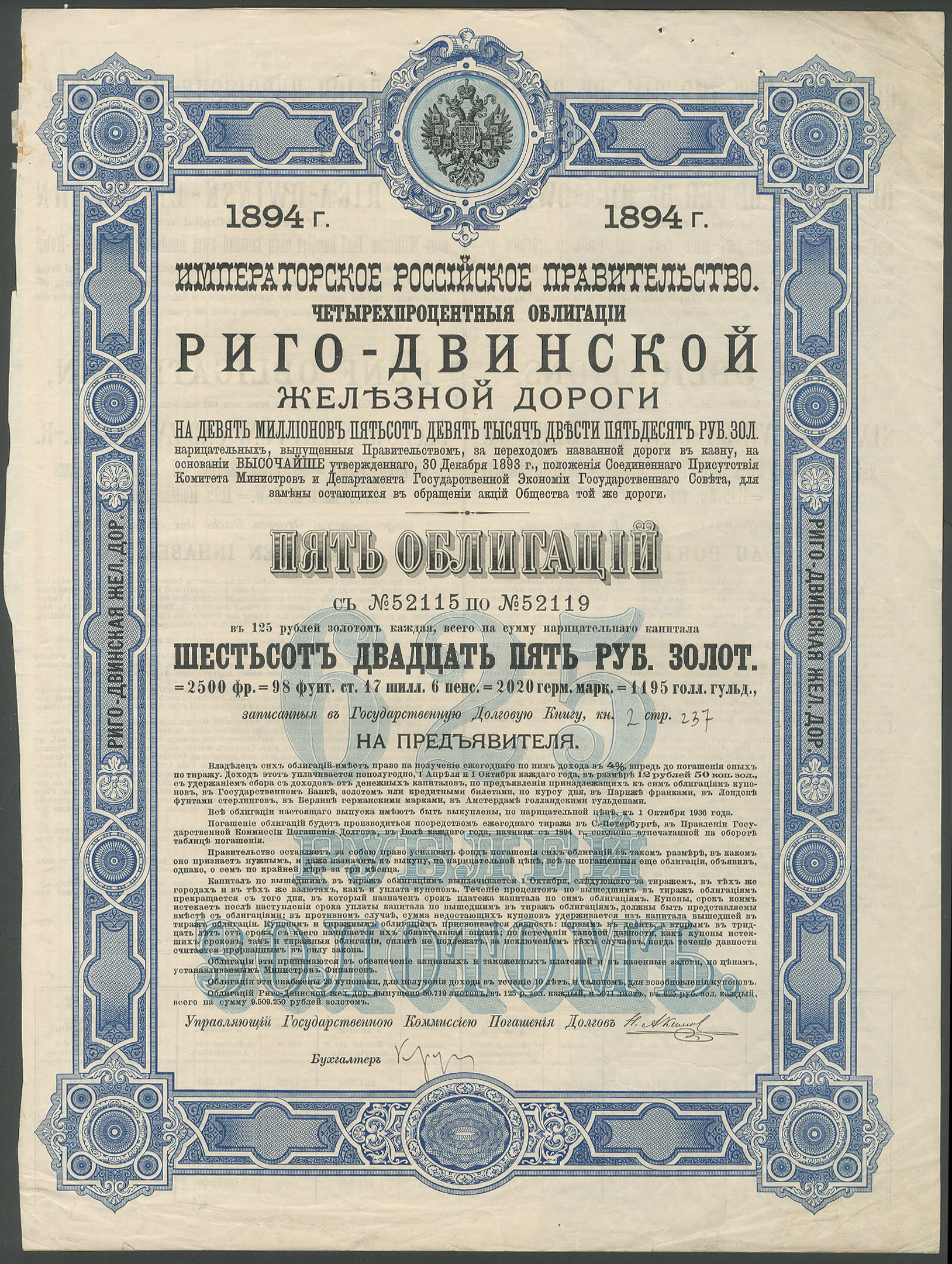 Russia: 1894, 4% Riga-Dvinsk Railway Loan