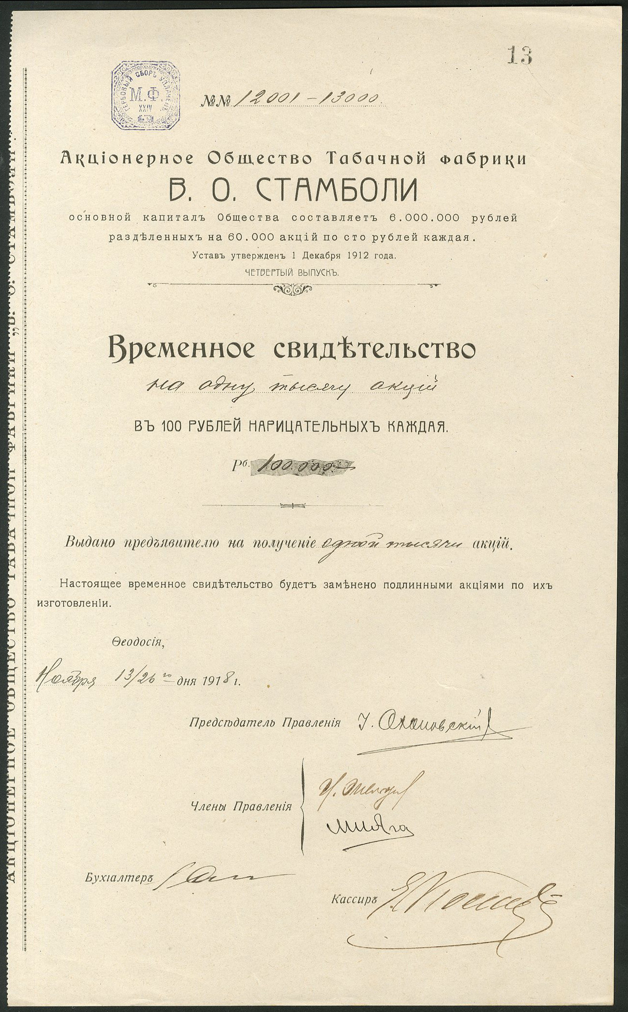 Société Anonyme de la Fabrique de Tabac “W. O. Stamboli” a la ville de Thèodosie