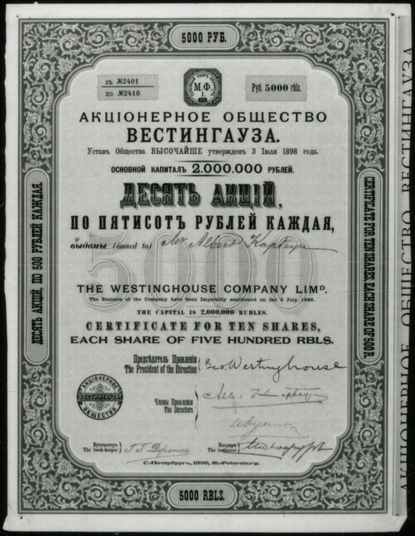 Sanctioned in 1898 with Head Office in St.Petersburg. Capital 2,000,000 roubles in shares of 500 roubles.