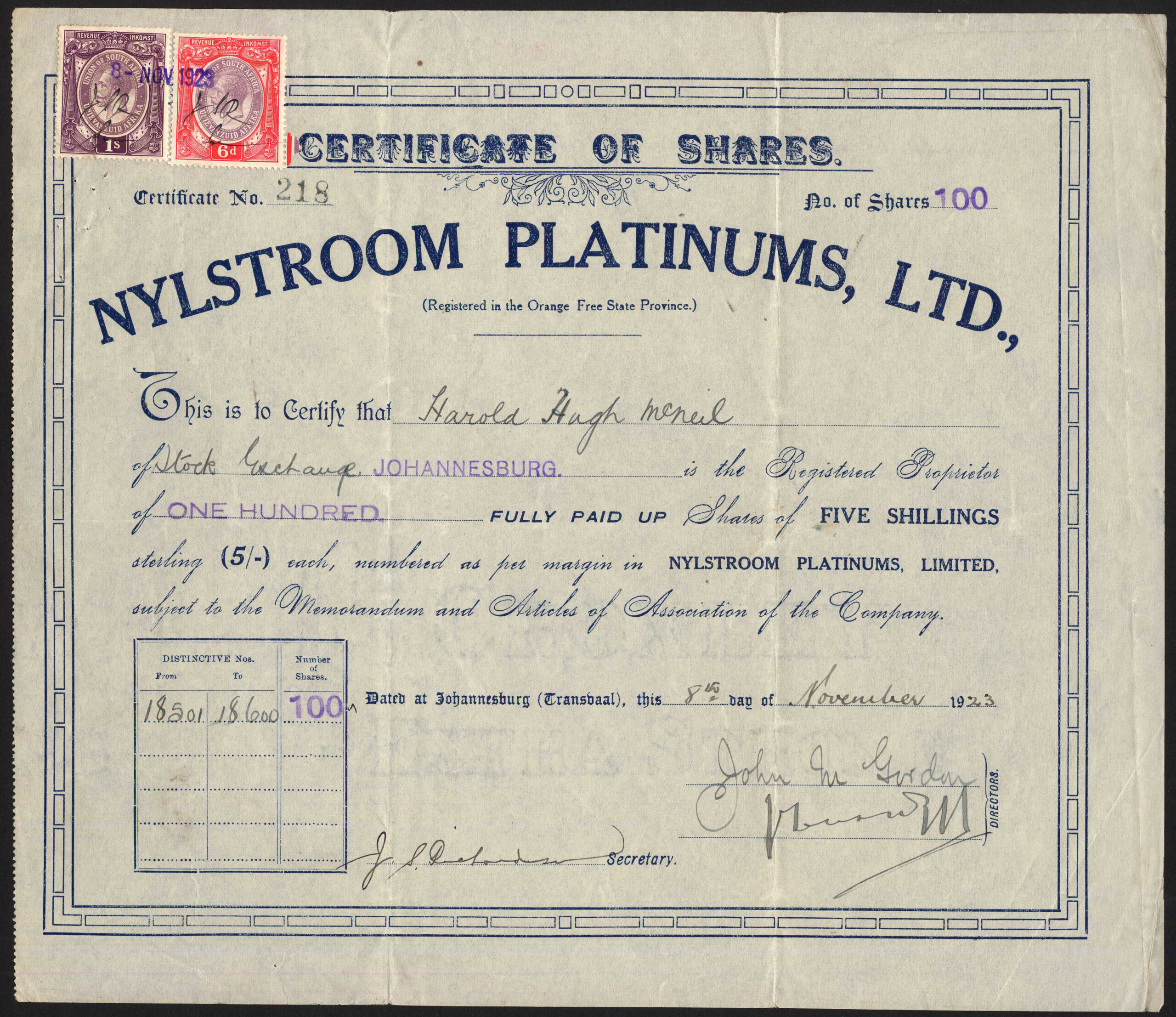 Registered in Orange Free State by 1923.