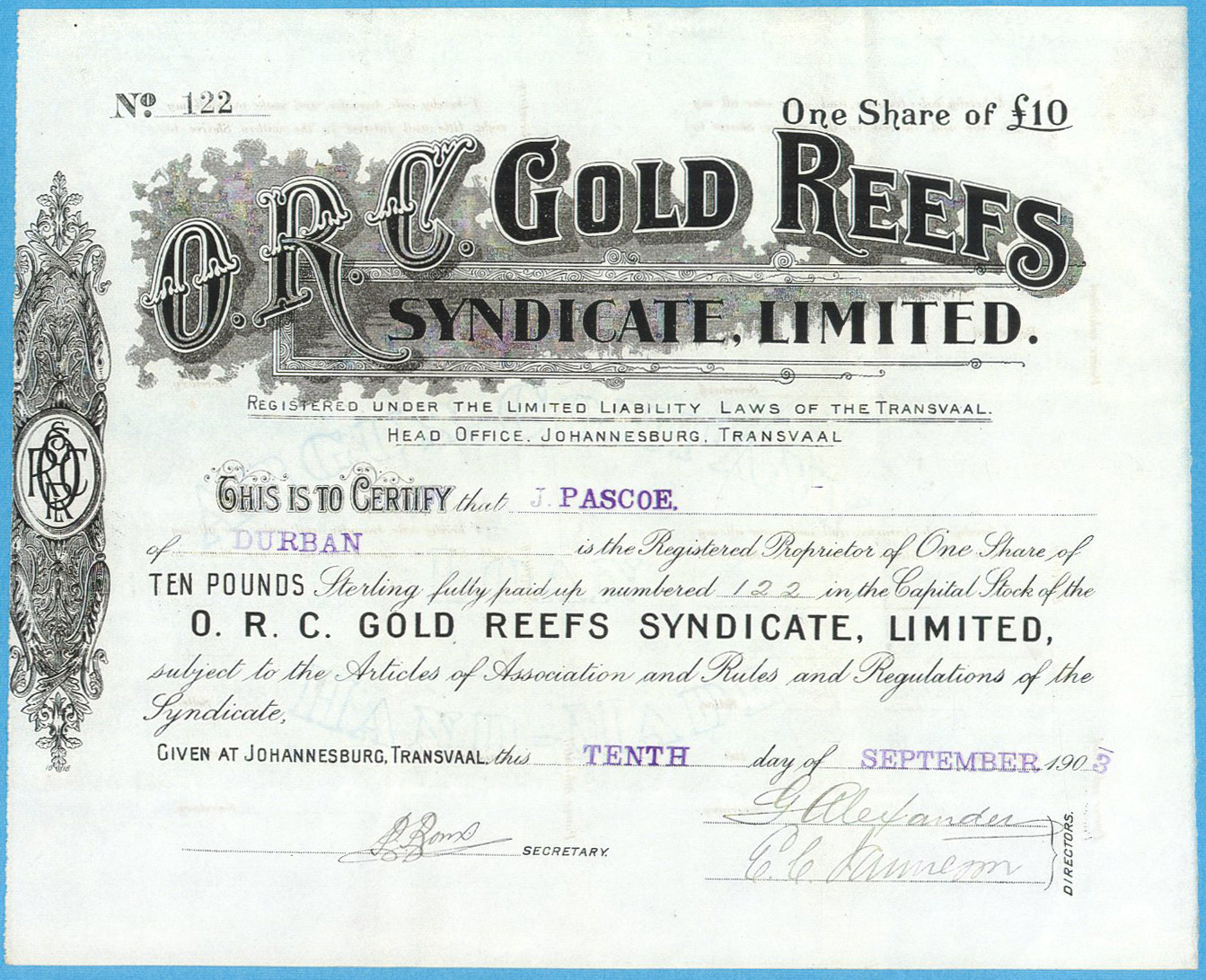 O. R. C. Gold Reefs Syndicate Limited