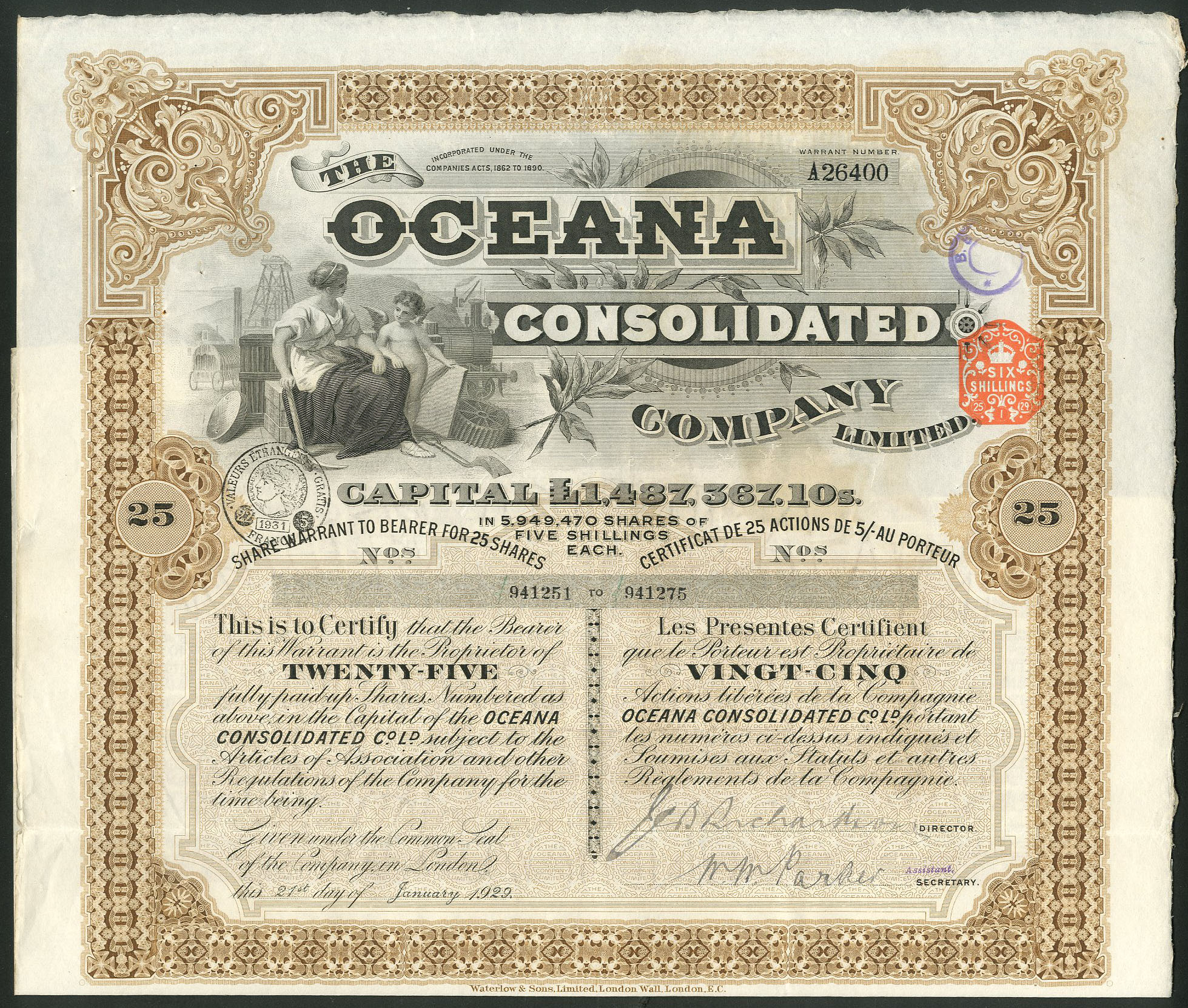 A large concern registered 1896 to acquire the business of the Oceana Company Ltd. Owned 225 Farms and mineral rights of over a million acres in the Transvaal.